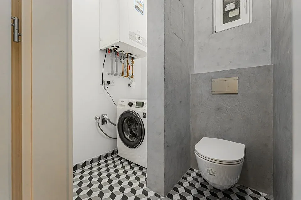 Kvalitní interiér bytu dispozičně nabízí velkorysou vstupní halu s úložným prostorem, krásný světlý a prostorný obývací pokoj, který je propojený s kuchyňským prostorem vybavený modernou kuchyňskou linkou s vestavěnými spotřebiči (myčka, lednice s mrazákem, varná deska, trouba). Komfort bytu poskytují dvě samostatné ložnice, jedna ložnice disponuje komorou. Dále se v bytě nachází moderní koupelna s vanou a s podlahovým topením, a samostatná toaleta s podlahovým topením, dále místnost s technickým zázemím s kotlem a pračkou. Součástí vybavení jsou i 2 vestavěné skříně, jedna v chodbě a druhá v ložnici (které nejsou na fotkách). Na podlahách jsou kvalitní dubové parkety a dlažba. K bytu náleží také sklep o velikosti cca 3 m². Výhodou je nový plynový kotel se smart termostatem, který umožňuje komfortní a úsporné nastavení vytápění.