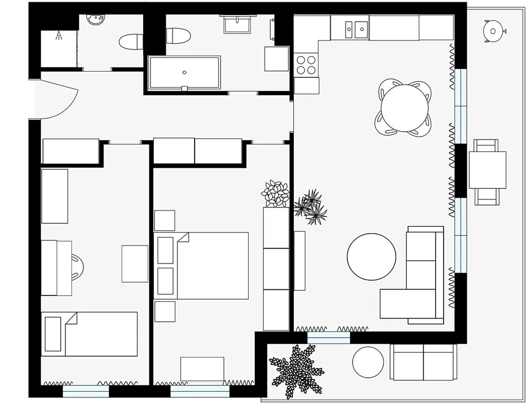 Byt je navržen s důrazem na praktičnost i pohodlí:
