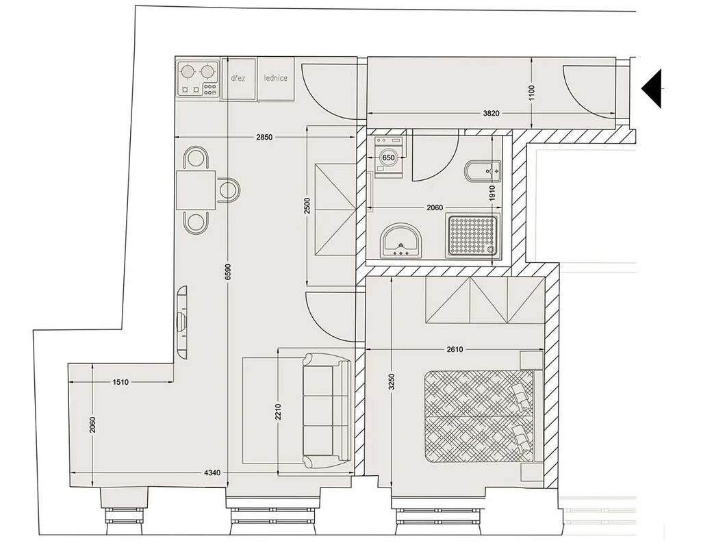 Prostorný zrekonstruovaný byt 2+kk (1 ložnice, 1 koupelna), o celkové obytné ploše 39,1m2, je situován ve druhém patře historické budovy s výtahem, v prestižní lokalitě Staré Město na Praze 1, nedaleko Staroměstského náměstí, v ulici Kozí.