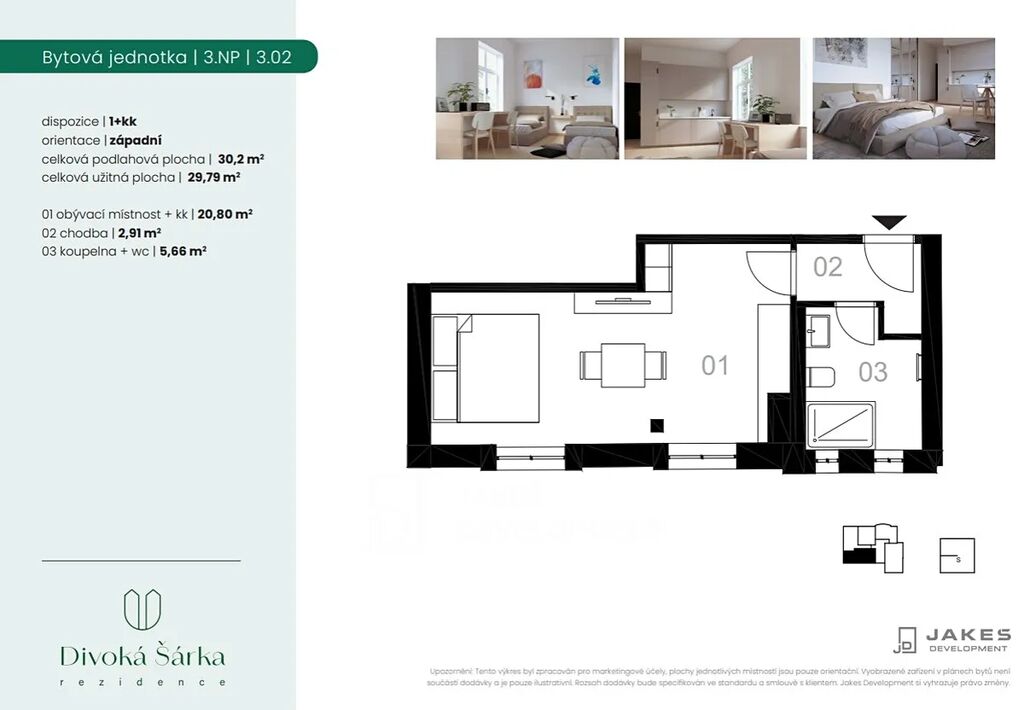 Pronájem bytu 1+kk, Praha - Liboc, Jenečská, 30 m2 (ID: 1963277)