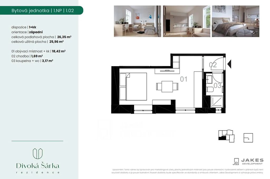 Pronájem bytu 1+kk, Praha - Liboc, Jenečská, 26 m2 (ID: 1963279)