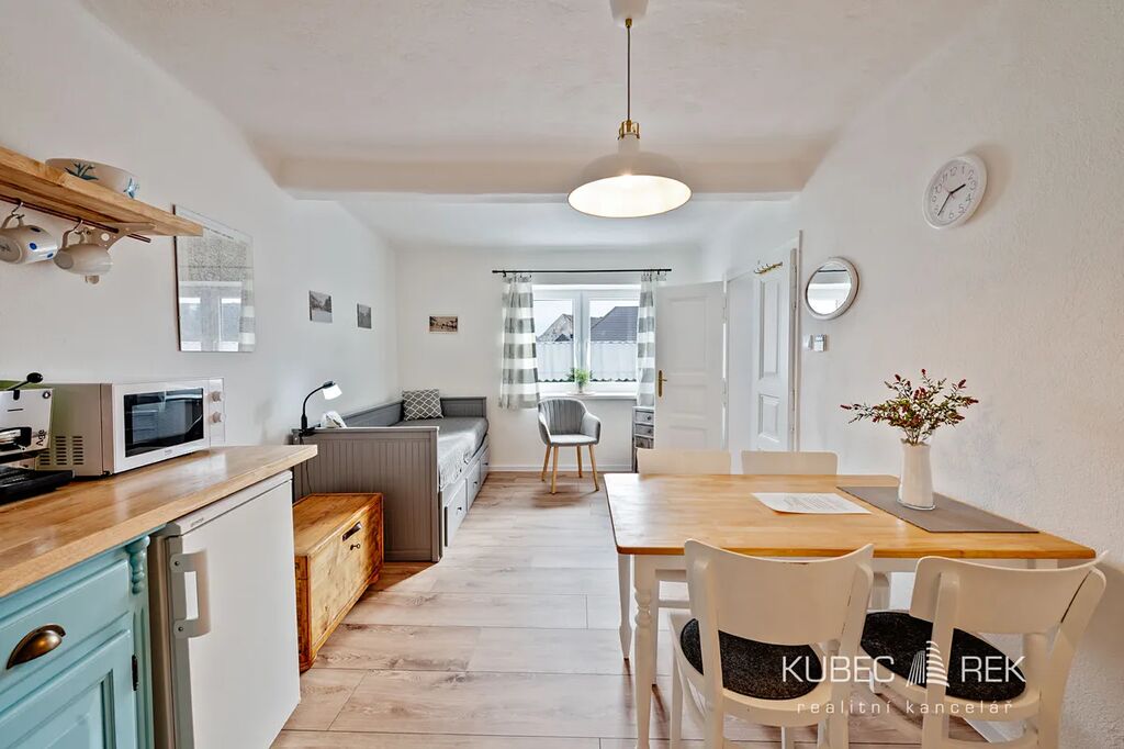 Nabízíme k prodeji útulný rodinný dům o dispozici 1+1 a podlahové ploše 80 m² se zastavěnou plochou 54 m², který se nachází přímo na Mariánském náměstí v malebném městečku Počátky. Nemovitost se prodává kompletně vybavená dle fotogalerie, takže nový majitel se může okamžitě nastěhovat nebo pokračovat v zavedeném krátkodobém pronájmu.