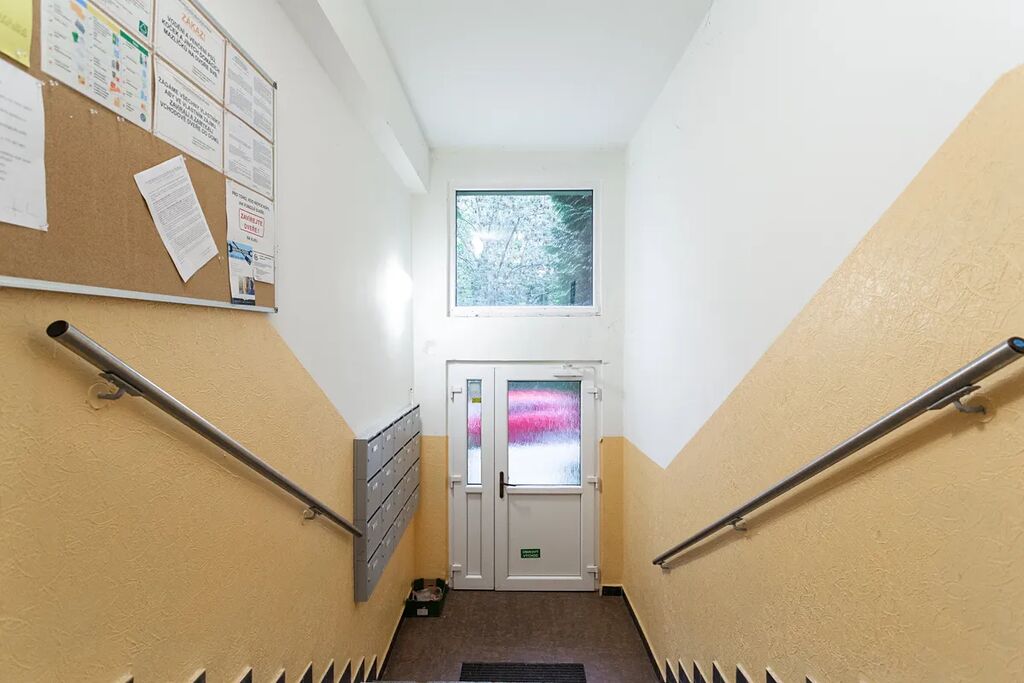 Byt se nachází v cihlové budově s novým výtahem v 2. nadzemním podlaží z 5 nadzemních podlaží. Okna z obou ložnic jsou orientována do klidného vnitrobloku a zelene. Topení je ústřední, v byte jsou radiátory. Plocha bytu je približne 42 m2 a k bytu patří sklep o výmere približne 2 m2. Sklep je zděný, se samostatnými plnými dveřmi, neprůhledný, hezký a suchý. Do budoucna by v domě chtěli dělat zateplení a novou fasádu.