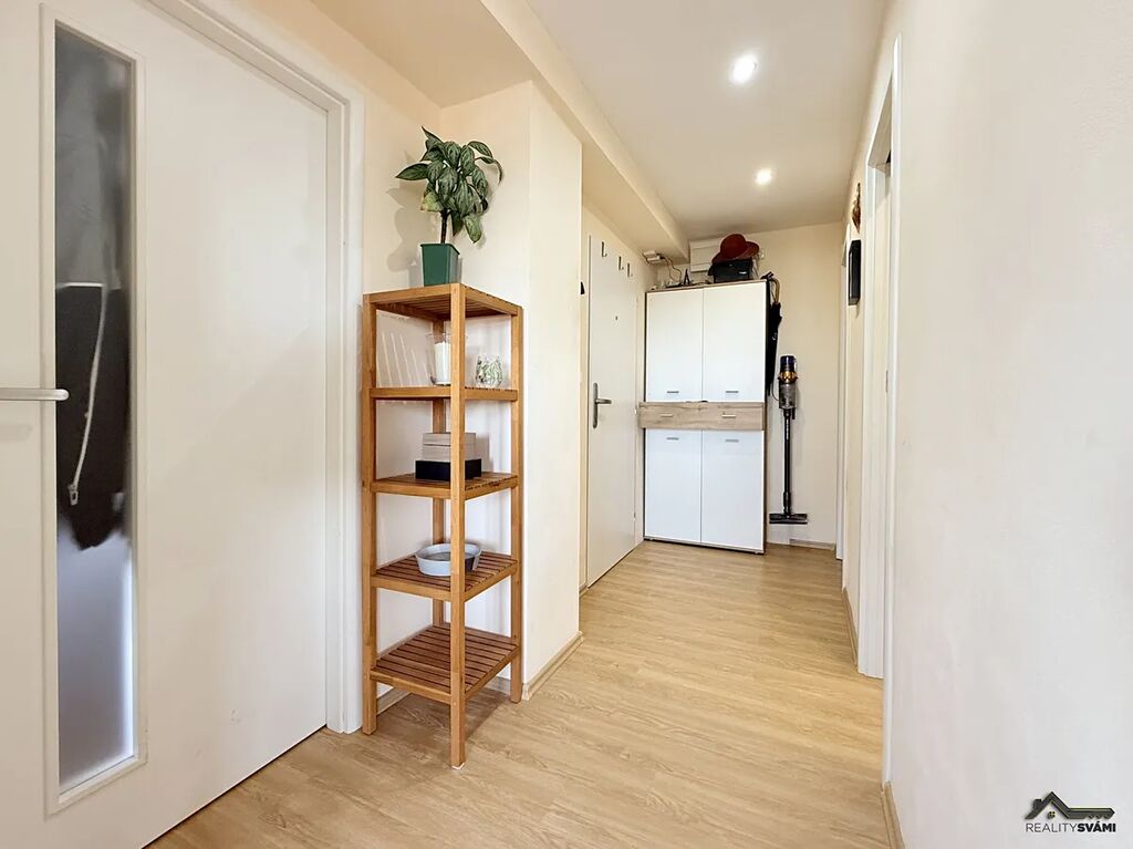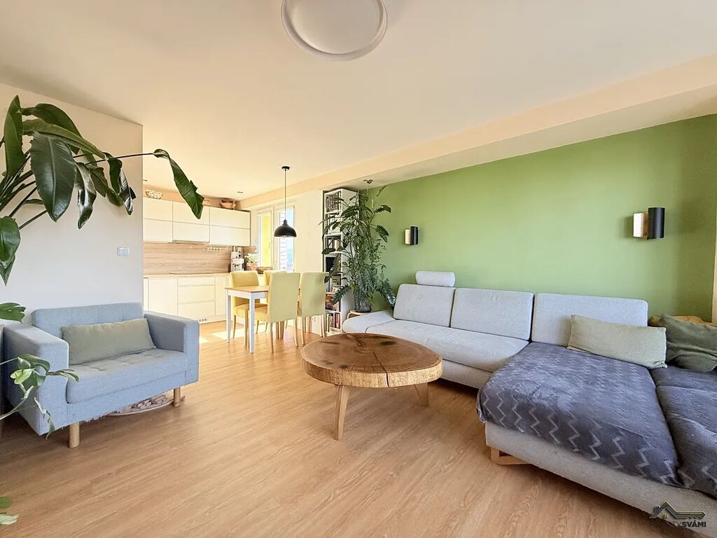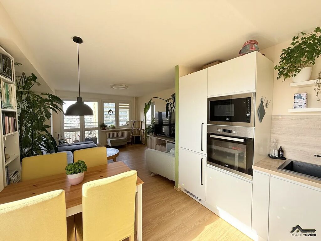 Rozdělení bytu bylo při rekonstrukci změněno, a to tak, že vznikly 2 samostatné pokoje, jako je ložnice a obývací pokoj, který je navíc spojený s kuchyňským koutem a jeden z pokojů je použitý jako průchozí pracovna. Byt je umístěný v desátém patře panelového domu po revitalizaci. Prošel před několika lety kompletní rekonstrukcí, při níž bylo změněn celkový prostor bytu, upraveny příčky, vyzděno bytové jádro. Dveře bytu byly umístěny ve většině případů do pouzder, čímž byl zvětšený obytný prostor. Dále byla měněna kuchyňská linka, která má vestavěné spotřebiče, včetně myčky nádobí. V koupelně nechybí velkorysý prostor sprchového koutu, ale našlo se místo i na pračku, nebo žebříkové topení, které díky elektrickému přívodu můžete používat i v létě. Nezapomnělo se na rozvody elektřiny a vody, plovoucí podlahy s kombinací dlažby na toaletě a v koupelně, snížení stropů, pomocí sádrokartonu v předsíni a nechybí i nové omítky. K bytu jsou 2 balkóny, kdy jeden z nich má téměř 8m2 a také sklepní kóje.