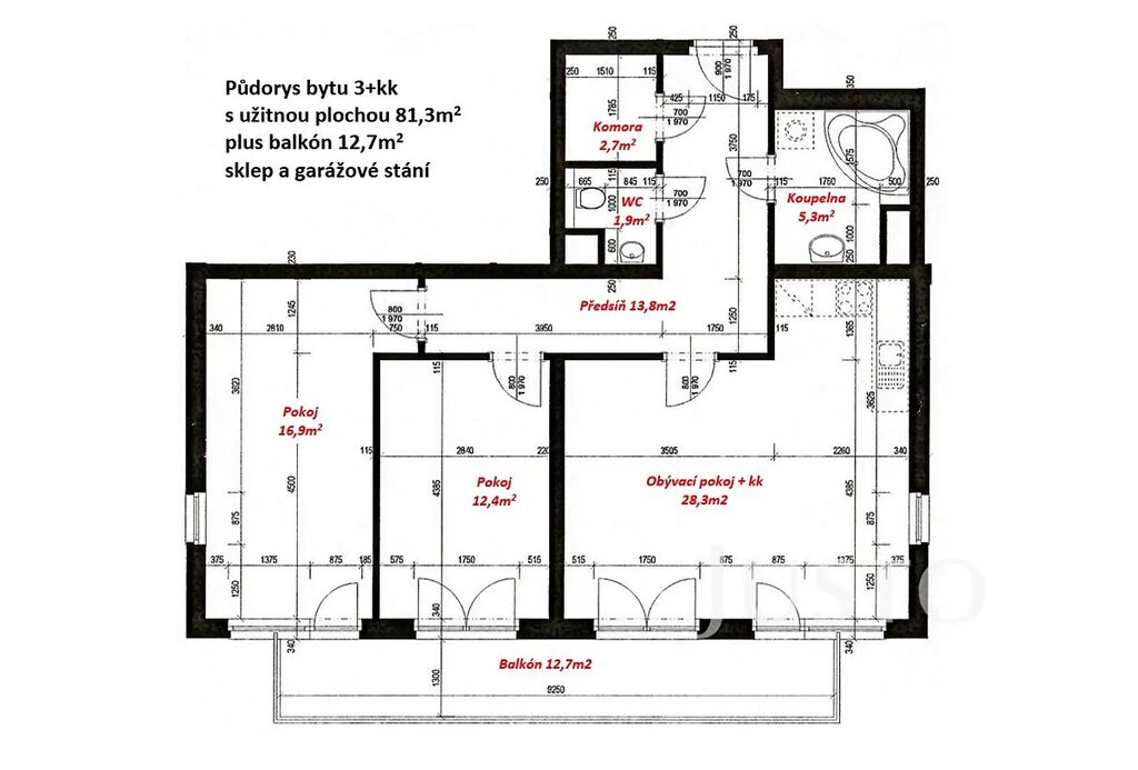Součástí ceny bytu je garážové stání v suterénu domu a sklepní kóje.