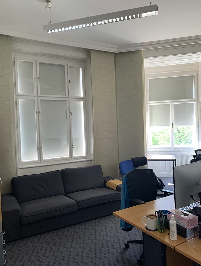 Pronajímatel nabízí zájemci od 1.4.2026 klimatizované nebytové prostory ve 2. NP (s výtahem) v secesní vile, která nabízí typické historické prostorné místnosti s velkou plochou a vysokými stropy se štukovou výzdobou. Dostatek světla v interiérech zajišťuje nárožní poloha vily s jihozápadní orientací, vysokými členěnými obloukovými okny, které doplňují vnitřní prosklené dveře s dekorativními motivy secese.