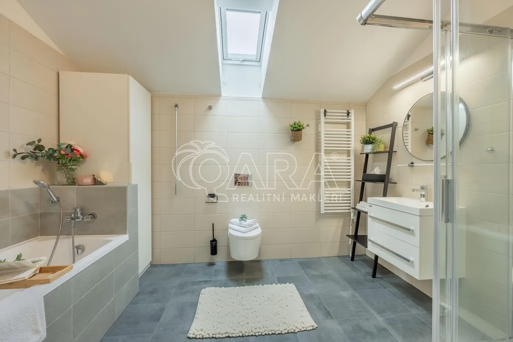 V celém domě je položena plovoucí podlaha, v koupelnách a technické místnosti je dlažba. Z obývacího pokoje je možný vstup na terasu a zahradu francouzskými okny. Vybudováno je parkovací stání pro čtyři automobily za elektrickou pojezdovou branou. Přístup do domu je z přilehlé komunikace. Zahrada je upravená a zatravněná, pozemek má pravidelný rovinatý tvar.