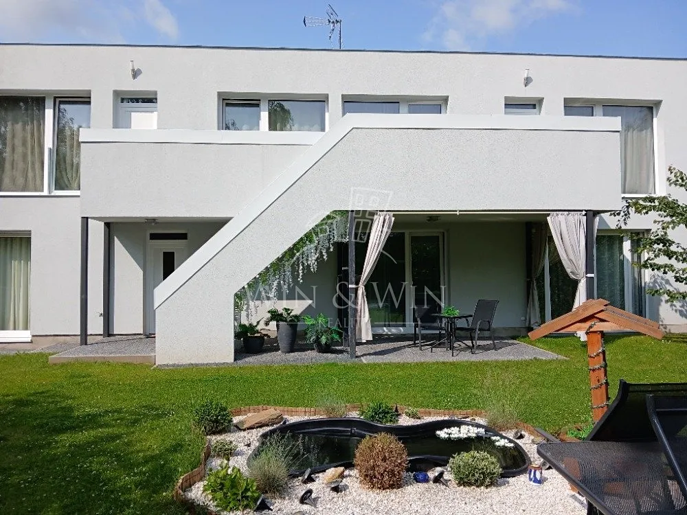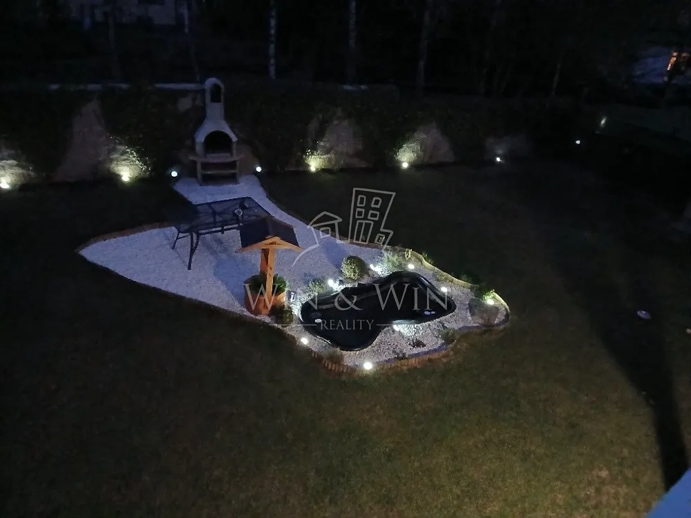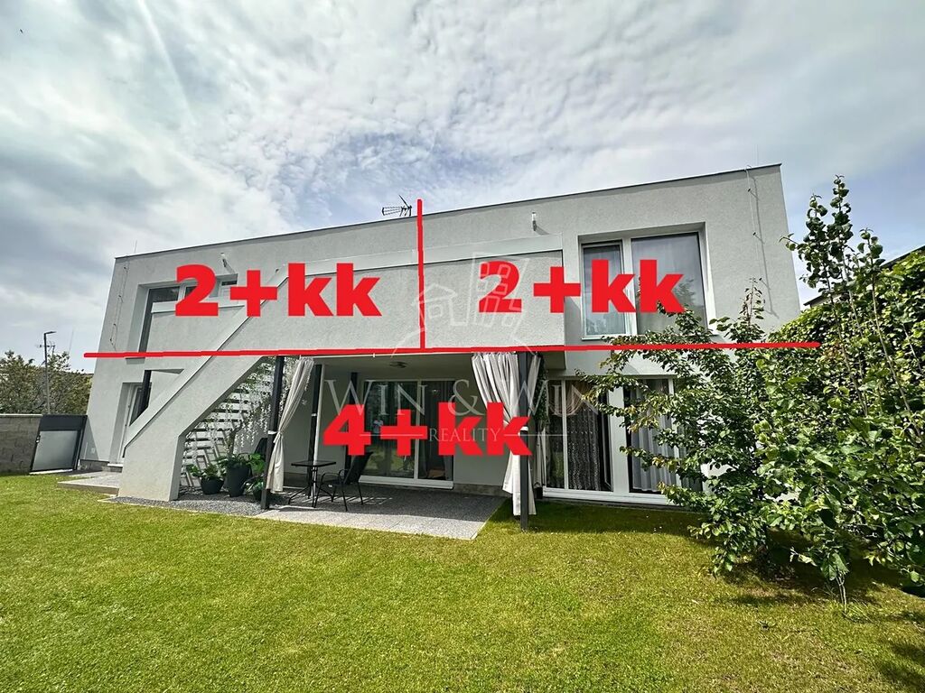 Přízemí nabízí prostornou dispozici 4+kk s technickou místností, kde je umístěn plynový kotel zajišťující efektivní a úsporné vytápění. Všechna okna jsou orientována do zahrady, což vytváří příjemné a klidné prostředí. Ze tří pokojů je přímý vstup na terasu a do zahrady – ideální místo pro relaxaci.