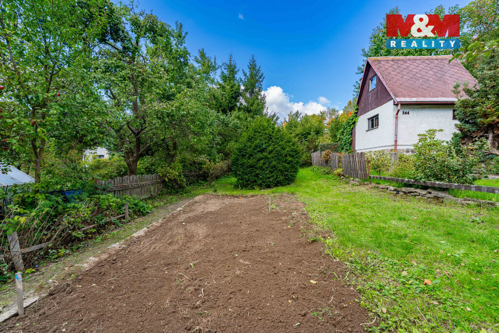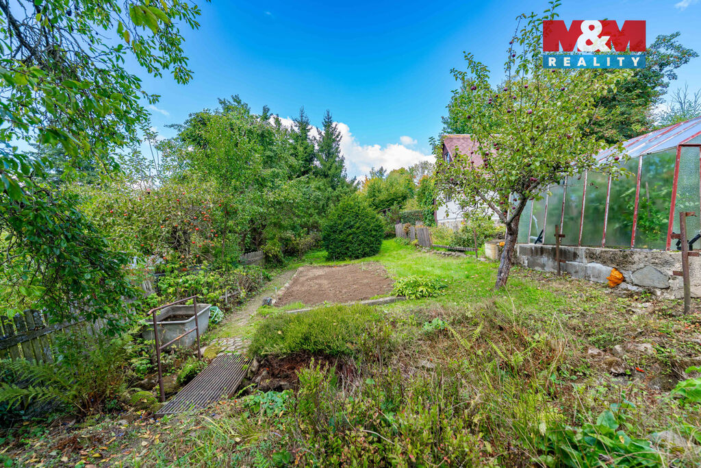 Nemovitost je ve velmi dobrém stavu a nabízí dvě místnosti rozložené do dvou nadzemních podlaží, přičemž k dispozici je také jedno podzemní podlaží. V zadní části zahrady stojí skleník se zděnými základy propojený s kamennou udírnou, na které navazuje zpevněná plocha s žulovým stolem a ohniště pro oblíbené opékání a grilování. Uprostřed pozemku protéká přírodní potůček s malým „vodopádem“. Na zahradě jsou nejen krásné jehličnany a ovocné stromy nesoucí pěknou úrodu, ale i několik záhonků a políčko na brambory. U chaty je vyvýšená terasa s kamennými schody a malým jezírkem s lekníny. Chatu se zadní částí zahrady propojují zpevněné chodníčky, v některých místech i s kamennými obrubníky.