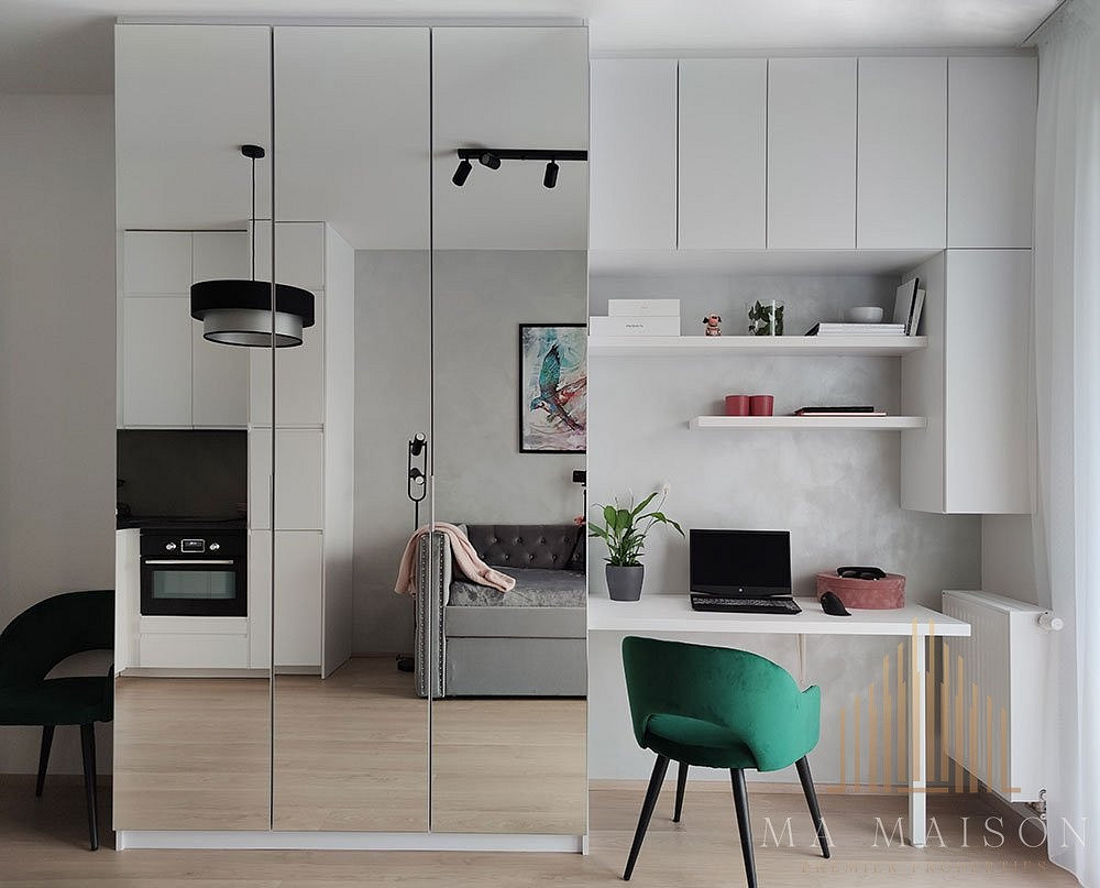 Interiér bytu byl navržen designérem a bytovým architektem s cílem vytvořit moderní a stylové prostředí, odpovídající vkusu paní majitelky, přičemž byl zohledněn záměr budoucího pronájmu. Návrh klade důraz na praktické a pohodlné bydlení, které splní potřeby budoucích nájemníků.