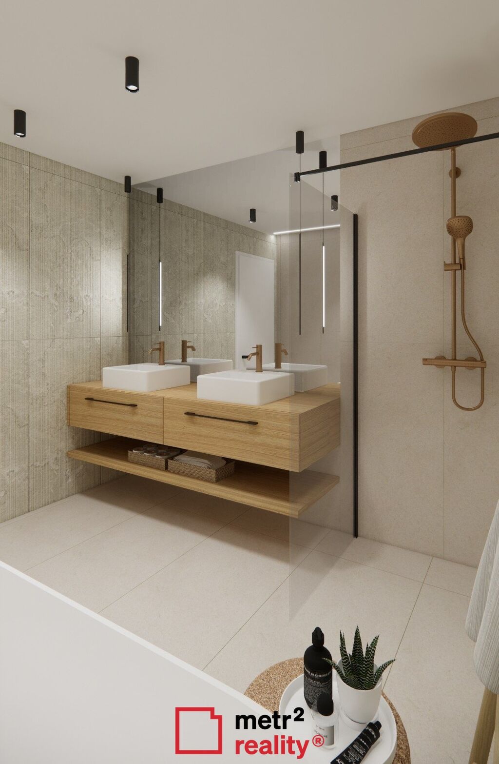 Představujeme Vám luxusní novostavbu rodinného domu o dispozici 5+kk užitné ploše 149,7 m², která se nachází na pozemku o velikosti 272 m² v klidné a žádané lokalitě městské části Olomouc – Slavonín, na ulici Jižní. Dům je navržen s důrazem na moderní technologie i precizní zpracování. Plastová okna se sedmikomorovým rámem v elegantním černém provedení spolu s elektrickými předokenními žaluziemi ve všech místnostech zajišťují vysoký komfort a energetickou úspornost. Vytápění je řešeno podlahovým teplovodním systémem napojeným na tepelné čerpadlo vzduch-voda, jehož vnitřní jednotka se nachází v technické místnosti a venkovní na střeše. Ve většině obytných prostor je připravena instalace klimatizačních jednotek, což umožňuje individuální regulaci teploty v letních měsících. Interiér je vybaven kvalitními lepenými vinylovými podlahami, schodiště má nášlapy z dubového masivu a dveře jsou osazeny bezfalcovou obložkou pro čistý design. Koupelna je zařízena moderním obkladem, který podtrhuje celkově nadstandardní úroveň domu. Fasádu tvoří kombinace točené omítky, thermowood obkladu a lakovaného plechu, což dodává domu osobitý a současný vzhled. Součástí domu je terasa o ploše 18 m², která navazuje na obytný prostor a poskytuje příjemné místo pro odpočinek či setkávání s přáteli. K dispozici jsou dvě krytá parkovací místa přímo na pozemku. Dům je řadový (krajní), oplocený a napojený na veřejnou kanalizaci, dešťová voda je efektivně svedena do retenční nádrže. Lokalita nabízí plnou občanskou vybavenost s dobrou dostupností do centra Olomouce. V těsné blízkosti najdete školu, nákupní centrum OC Haná, supermarket, restaurace, sportovní i rekreační zařízení a rychlý přístup na MHD. Díky blízkosti obchodního centra, aquaparku a dalších služeb je toto místo ideální volbou pro mladé lidi nebo páry, kteří hledají pohodlné a moderní bydlení v klidném prostředí a zároveň s výhodami městského života. Pro více informací o této nemovitosti nebo sjednání prohlídky nás prosím kontaktujte