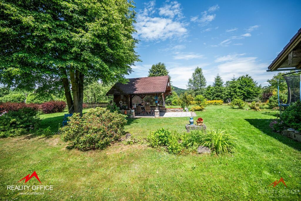 Zahrada kolem domu je opravdu velkolepá a nudit se zde rozhodně nebudete. Kromě pergoly zde stojí garáž s velkou dílnou a samostatně stojící dřevěný domek na uskladnění zahradního vybavení.