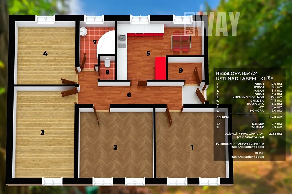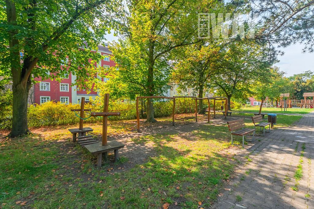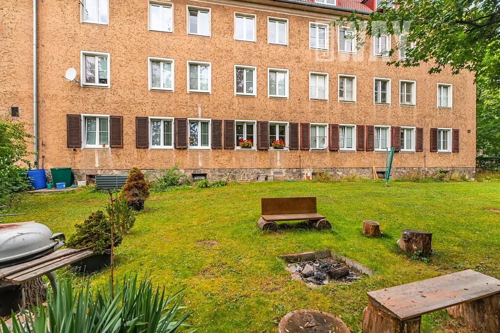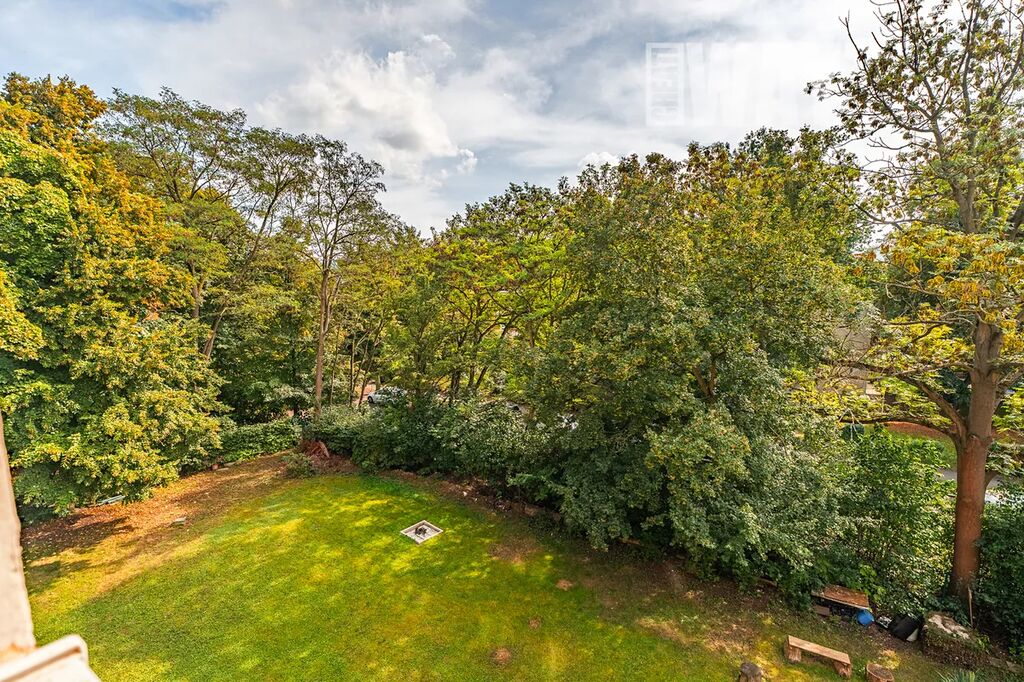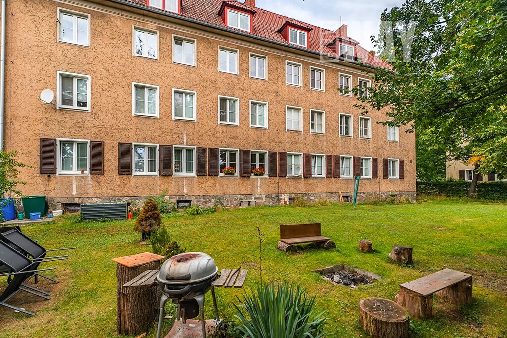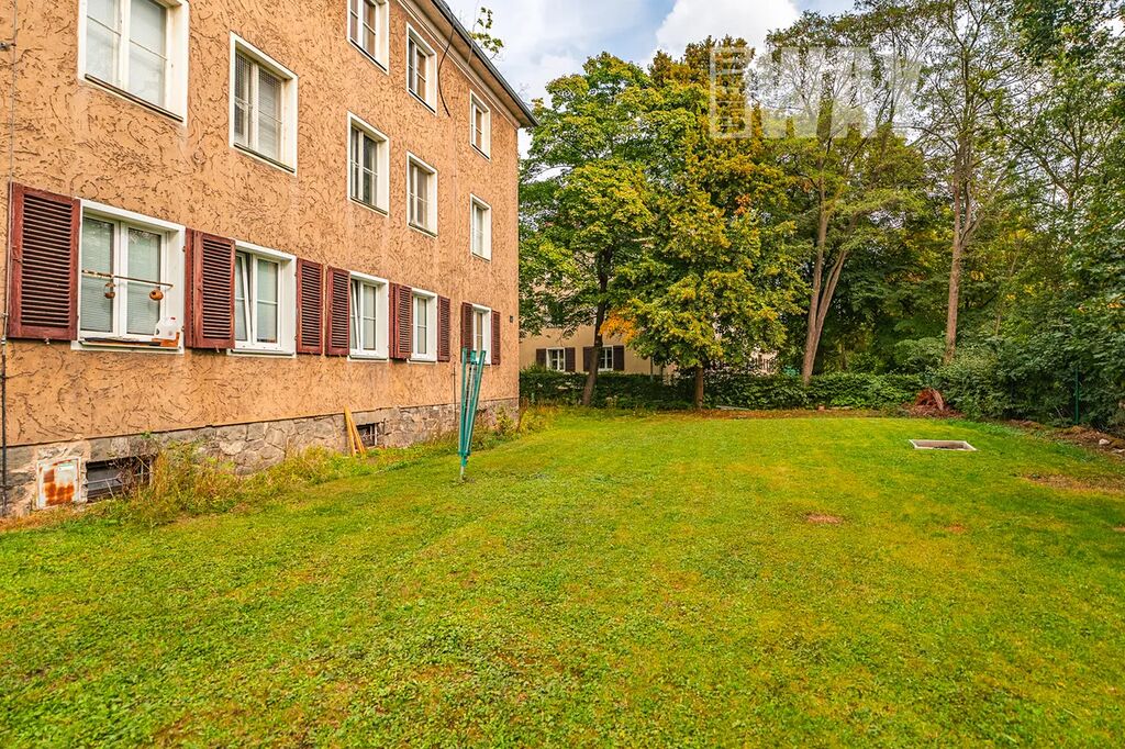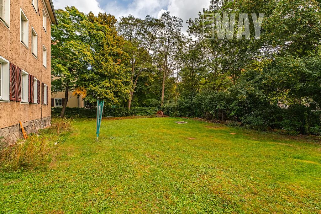 K bytu náleží oplocená soukromá zahrada, kde na 2.262 zatravněných m2 najdete vzrostlé stromy, posezení u ohniště i sušáky na prádlo. Zahrada slouží výhradně obyvatelům domu, takže pokud chcete zkombinovat výhody bydlení v bytě s možností pobývat ve vlastní zeleni, toto je ta správná nabídka.