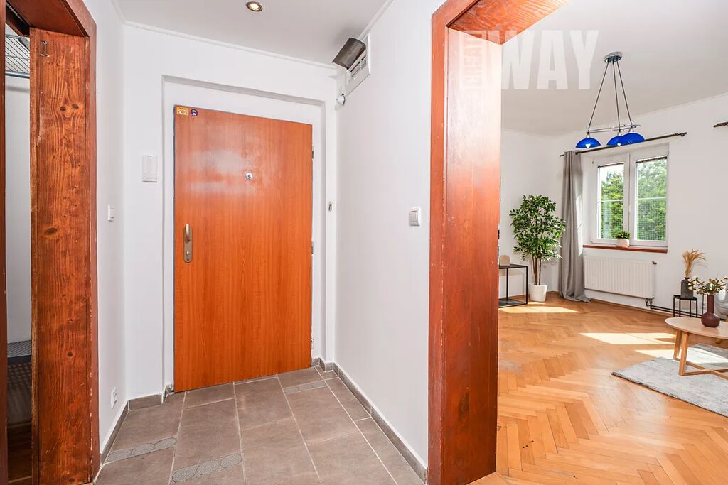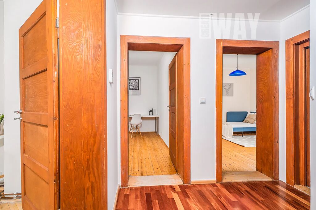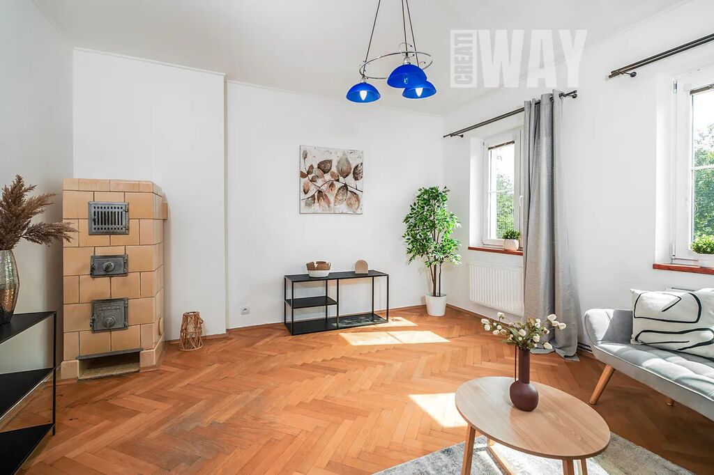 Podlahy tvoří kombinace poctivého dřeva a dlažby - byt tak i díky dalším dřevěným prvkům, jakou jsou dřevěné dveře i zárubně, působí harmonicky a má příjemnou atmosféru. Plastová okna zase přinášejí praktičnost a méně starostí do budoucna.