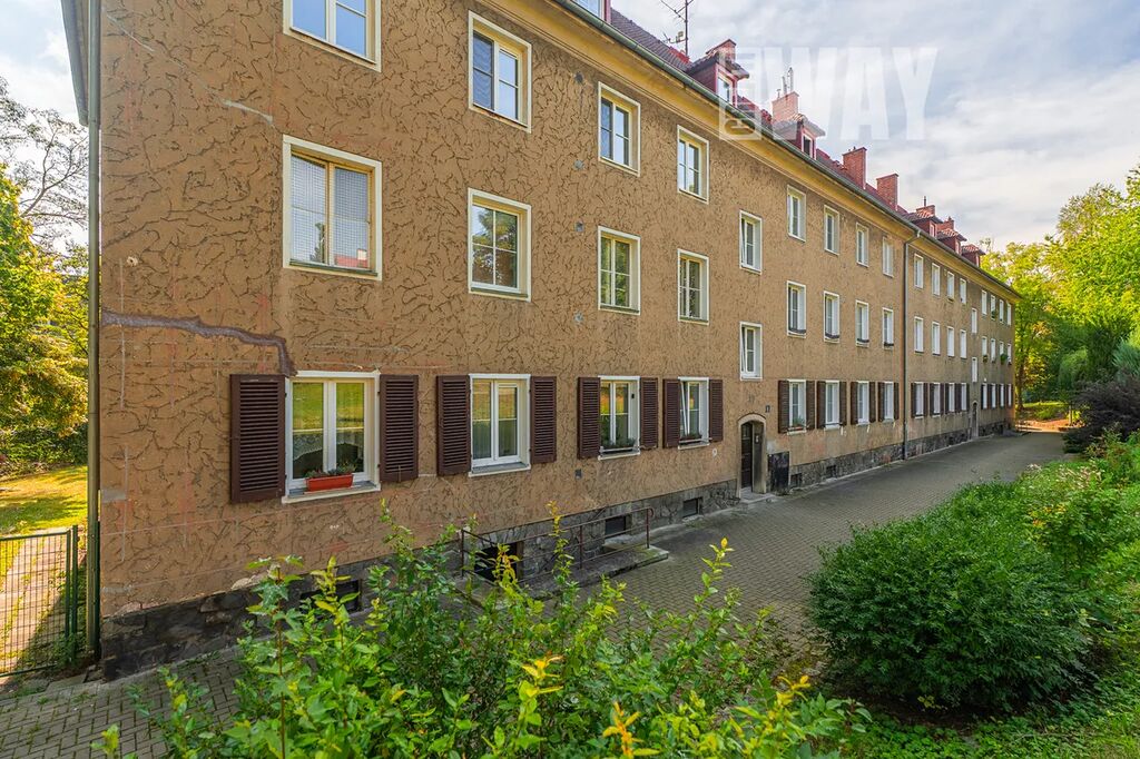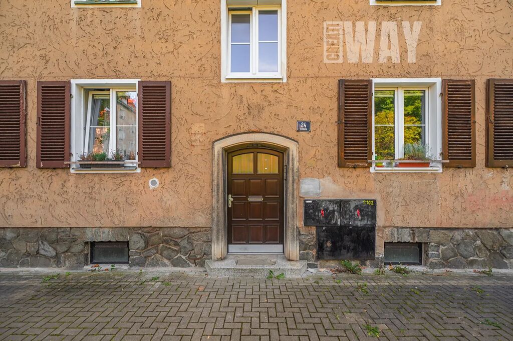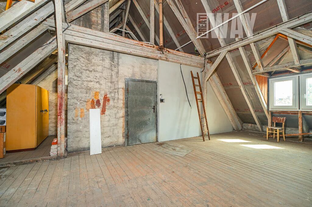 Cihlová stavba z poloviny 20. století s valbovou střechou a arkýři má přesně tu solidnost, kterou chcete od místa, kde budete žít. Fasáda je tradiční, schodiště poctivé betonové – a když vám někdo řekne, že „dům má charakter“, není to tentokrát fráze. Celý objekt prošel částečnou rekonstrukcí: nová střecha, nové rozvody, výměna oken a vchodových dveří. Zkrátka základ je pevný a modernizace už proběhla.