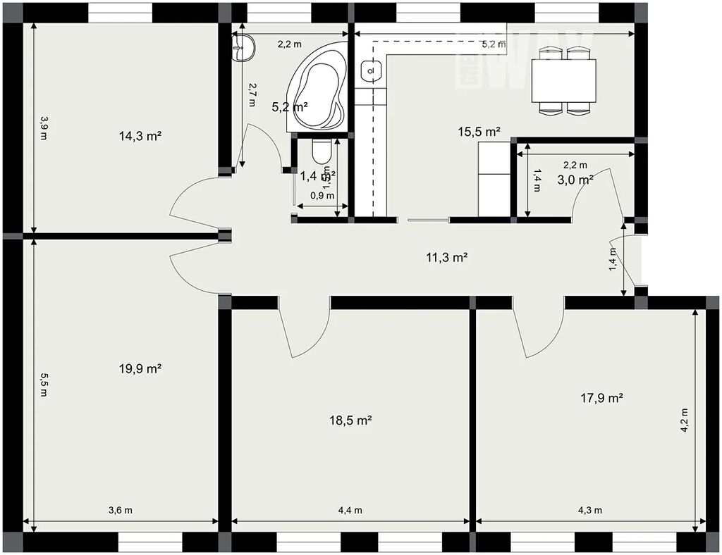 Byt samotný nabízí čtyři samostatné pokoje - tři orientované k jihu a jeden, společně s kuchyní, k severu. Všechny pokoje jsou dostatečně velké, abyste se v nich cítili dobře.