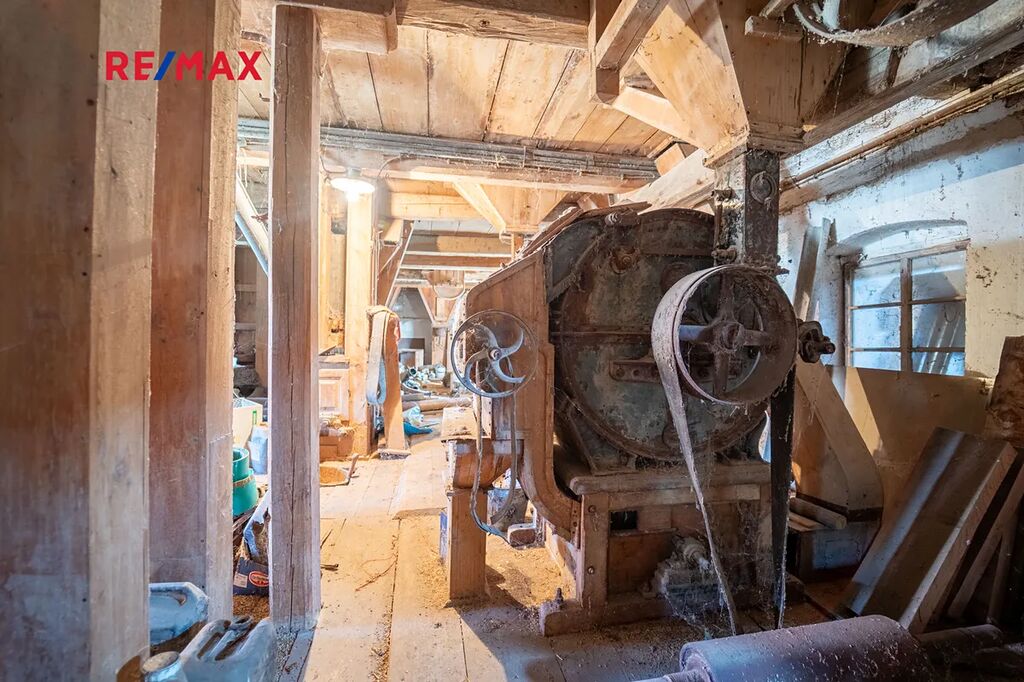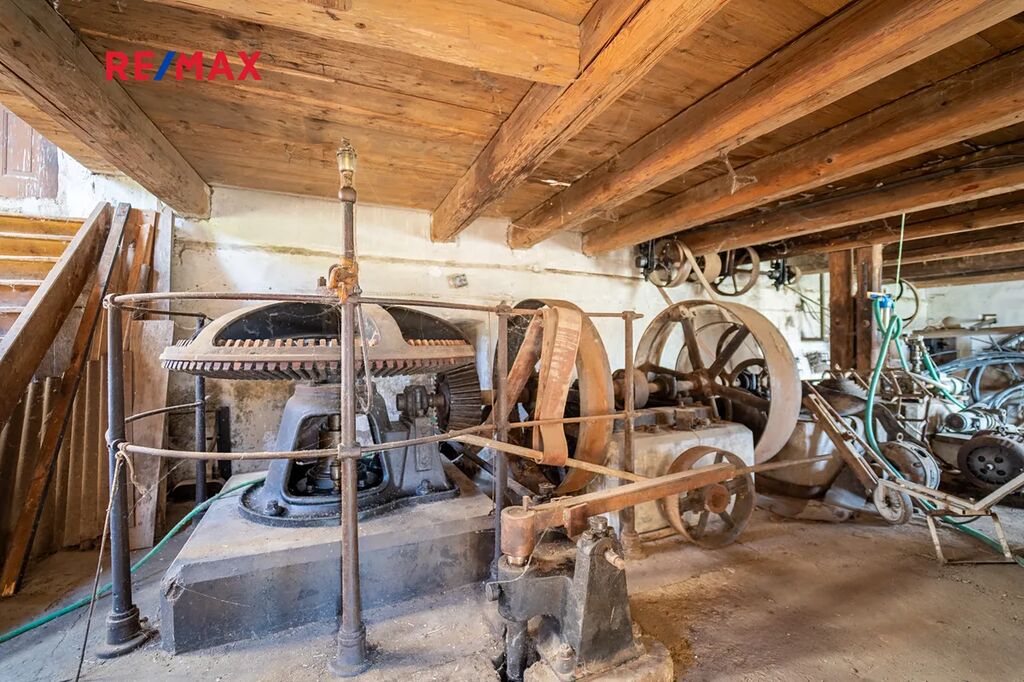 Opravdový poklad! Historický, funkční mlýn s Francisovou turbínou. Součástí prodeje je převoditelné vodní právo na dalších 85 let, což představuje nejen hodnotu, ale i energetickou soběstačnost a potenciální příjem. V roce 1919 byl pohon mlýna vodním kolem zaměněn za pohon elektřinou vlastní výroby.