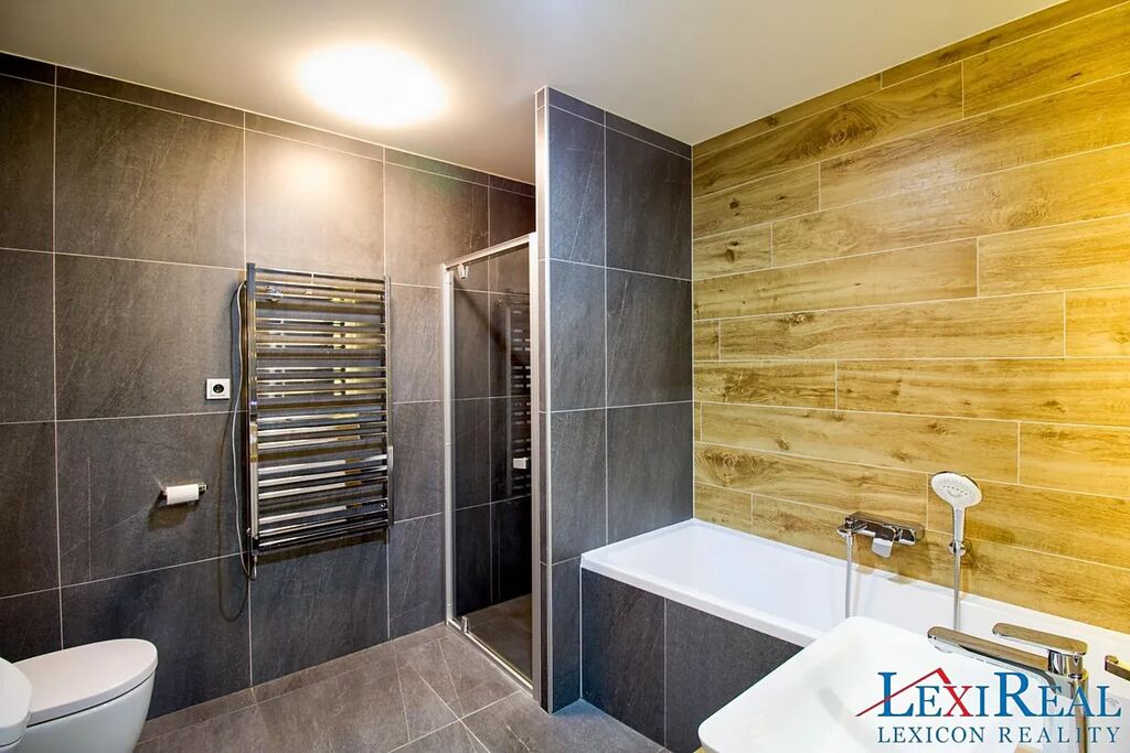 Další koupelna (vana + sprchový kout, WC ) a dva prostorné dětské pokoje nebo pokoje pro hosty / pracovny.