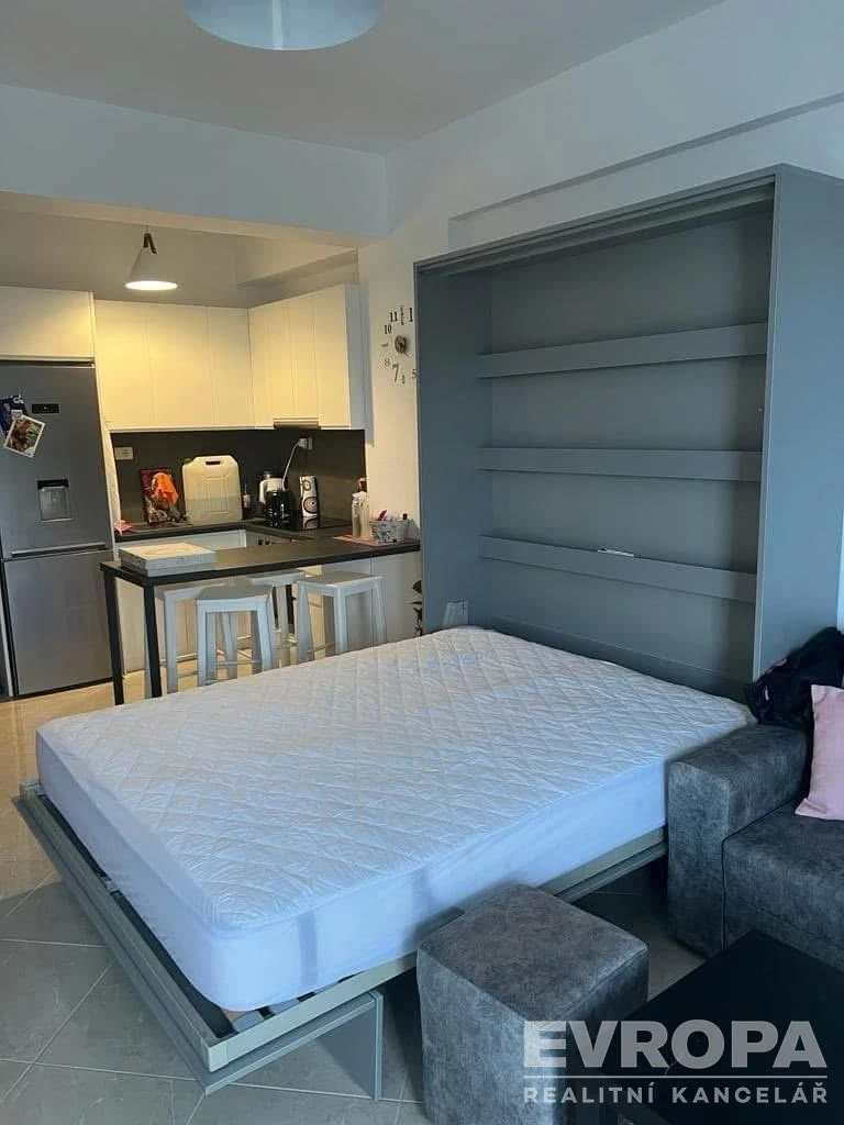 Interiér bytu je řešen ve stylu 2+kk, což představuje jeden prostorný pokoj spojený s kuchyní a jeden samostatný pokoj, který nabízí dostatek soukromí. Byt je vycházející z nejvyšších standardů a je ve vynikajícím stavu, připravený k okamžitému nastěhování bez potřeby dalších investic. Podlahy pokryté kvalitními materiály společně s moderními prvky dotvářejí uklidňující pocit domova.
