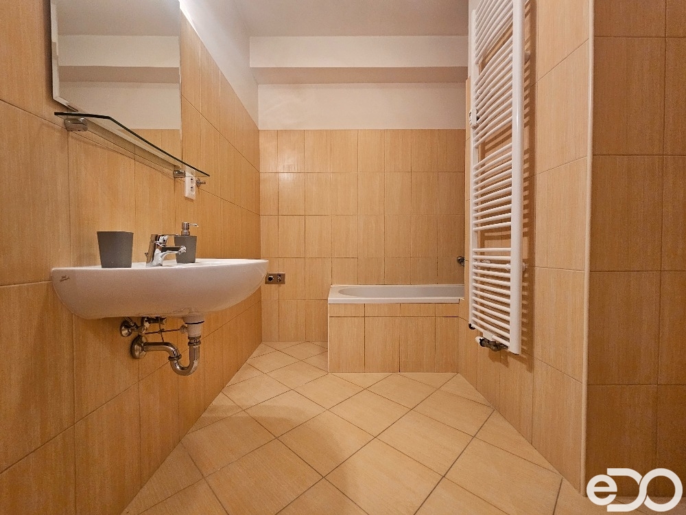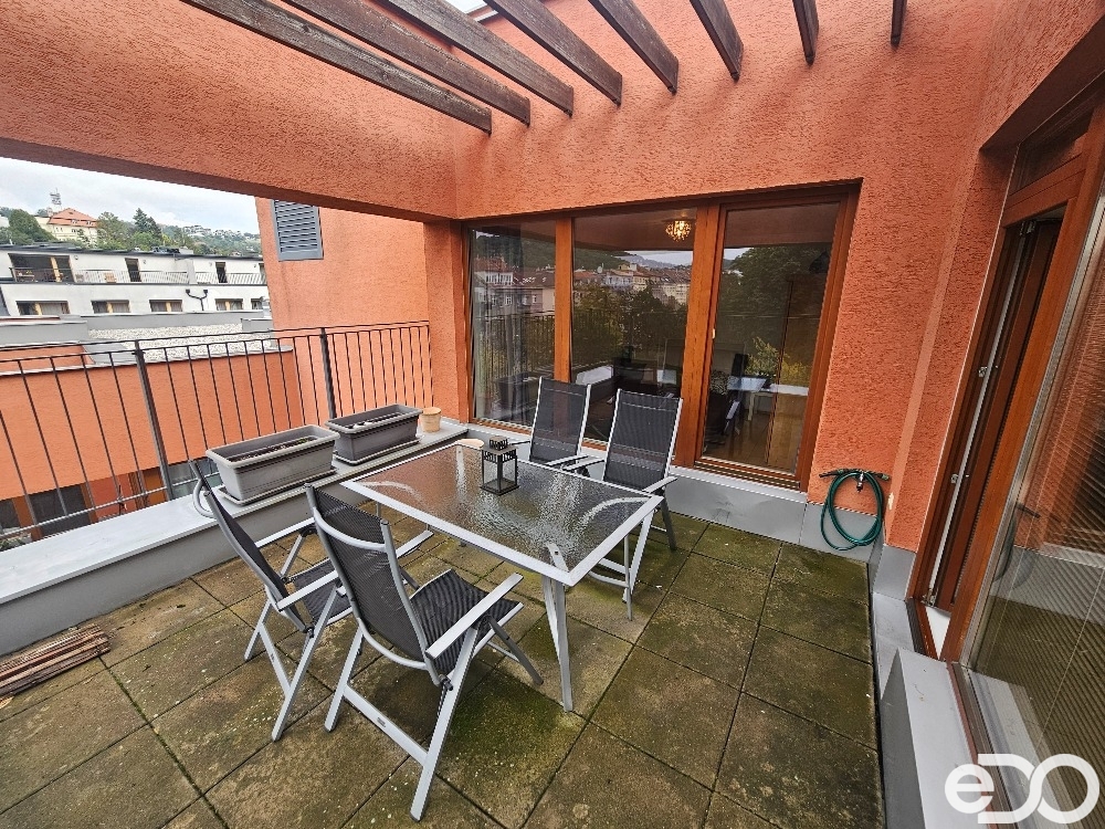 Velmi rád bych Vám v zastoupení majitele nabídl k pronájmu velmi zajímavou bytovou jednotku o dispozici 2+kk a celkové ploše 62 m2, která se nachází v posledním, 6. patře novějšího domu s výtahem. Jednotka (cca 47 m2) je vybavena zařízením a nábytkem, který je na fotografiích, kuchyňská linka je zařízena spotřebiči (sklokeramická deska, digestoř, trouba, myčka, lednice s mrazákem), ložnice není spojena s obývacím pokojem dveřmi, vstup je otevřený. Koupelna je velmi prostorná s vanou a toaletou. Příslušenstvím je terasa (cca 15 m2) s posezením, na kterou je vstup z obývacího pokoje. Dále sklep, který se nachází v suterénu domu. Od 1. prvního prosince je možné si případně dopronajmout garážové stání za 2 500 Kč, které se nachází přímo v domě. Není to ale podmínkou pronájmu.