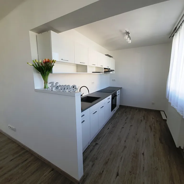 Byt se nachází v cihlovém domě, je umístěn v 1. patře a jeho dispoziční řešení je 2+1 o celkové ploše 50 m2 + 10 m2 sklep. Byt je po kompletní rekonstrukci v r. 2020, jsou zde plastová okna, podlahovou krytinu tvoří plovoucí podlaha, nové rozvody elektřiny, koupelna se sprchovým koutem. V bytě zůstává kuchyňská linka vč. trouby a sporáku se sklokeramickou deskou.