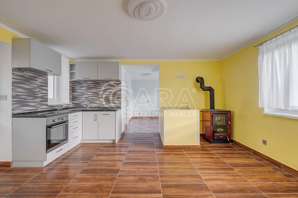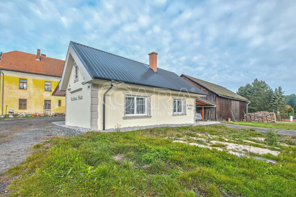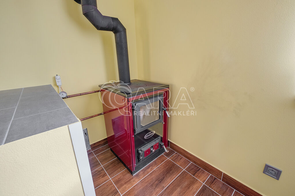 IS: elektřina 220 V, studna, jímka, topení: kamna na TP s výměníkem a rozvodem do radiátorů a do podlahy.