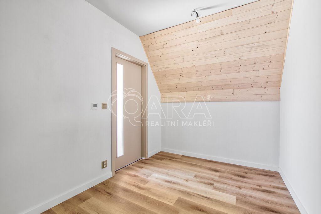 Objekt je osazen kvalitními hliníkovými okny s trojskly a speciální barevnou úpravou. Tato okna zajišťují vynikající tepelné i zvukové izolační vlastnosti a úsporu energií. Prostory podtrhují moderní podlahové krytiny – vinylová podlaha a dlažba, které jsou nejen elegantní, ale také velmi praktické a snadné na údržbu. O stálé a příjemné teplo se postará chytré podlahové vytápění, které si pohodlně nastavíte pomocí termostatu. Odpadní vody jsou řešeny vlastní jímkou, a k dlouhé životnosti a efektivitě přispívá i plechová střecha se stříkanou izolací.