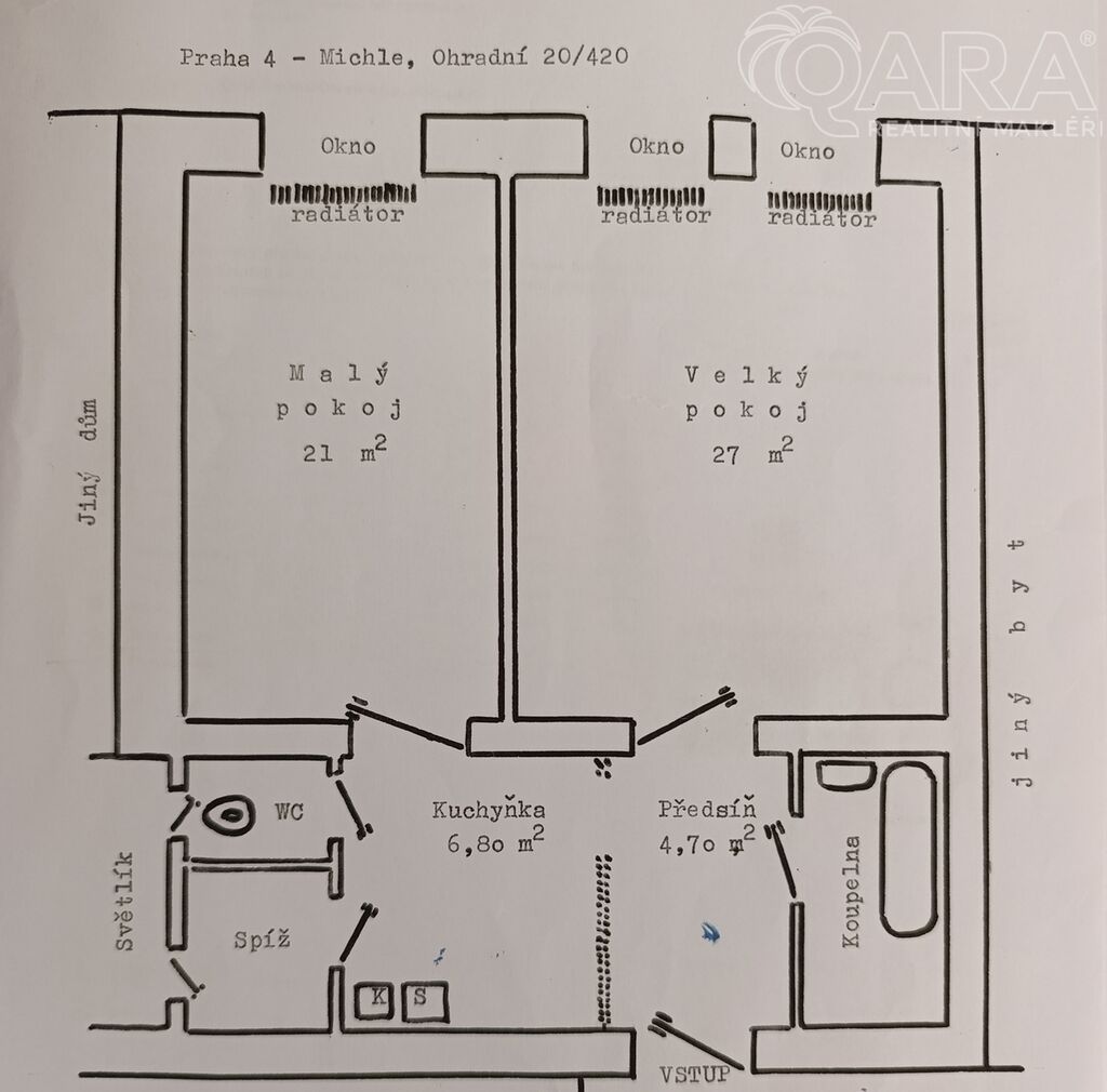 Exkluzivně nabízíme k prodeji byt v osobním vlastnictví o dispozici 2 + 1, situovaný ve 4. nadzemním podlaží šestipodlažního cihlového domu s výtahem. Tento prostorný byt s celkovou plochou 65 m² se nachází na adrese Ohradní 420/20, v příjemné a vyhledávané lokalitě Praha 4 - Michle.