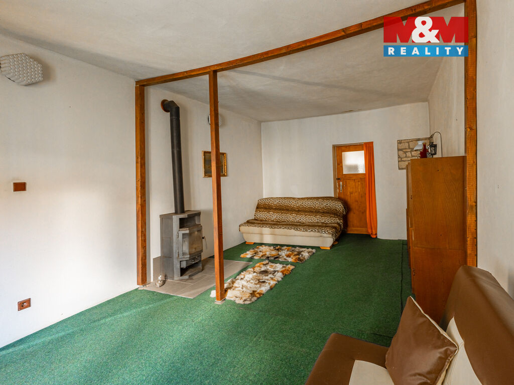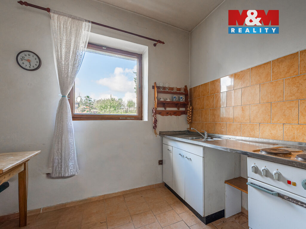 Nabízíme k prodeji útulny rodinný dům v obci Kounov. Prostorné 2+1 s rozsáhlou zahradou, sklepními prostory, pergolou, dílnou a garáží je vzdáleno pouhých 18 minut cesty autem od Rakovníka, 9 minut od nájezdu na R6-Praha-Karlovy Vary, 35 minut od Letiště Václava Havla. Dům má od roku 2022 nové rozvody: elektroinstalace (v mědi), vody, kanalizace; též nový komín. V obývacím pokoji a ložnici jsou dvoje krbová kamna, která prostory 2+1 řádně vytopí. Teplou vodu zajišťuje elektrický bojler. Přitopit lze v koupelně radiátory. Vstupní chodbou se vlevo vchází do obývacího pokoje (18 m²), ze kterého se dostanete do kuchyně. Vpravo je rozlehlá ložnice, z níž lze udělat místnosti dvě. Podlahy tvoří v obývacích místnostech lino, přes které je položený koberec, v chodbě, v koupelně a WC je dlažba. K domu náleží zahrada o výměře 429 m², též garáž (30 m²) pro jedno auto, v níž je přístup k elektřině. V okolí je lékař, škola, obchody, restaurace, do vesnice též jezdí vlaky a autobus.