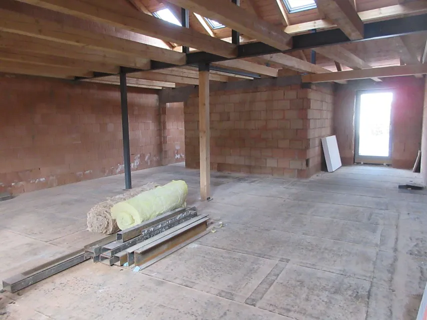 Podkroví – hrubá stavba vystavěna 2025 (140 m2) půdní prostor připravený pro výstavbu