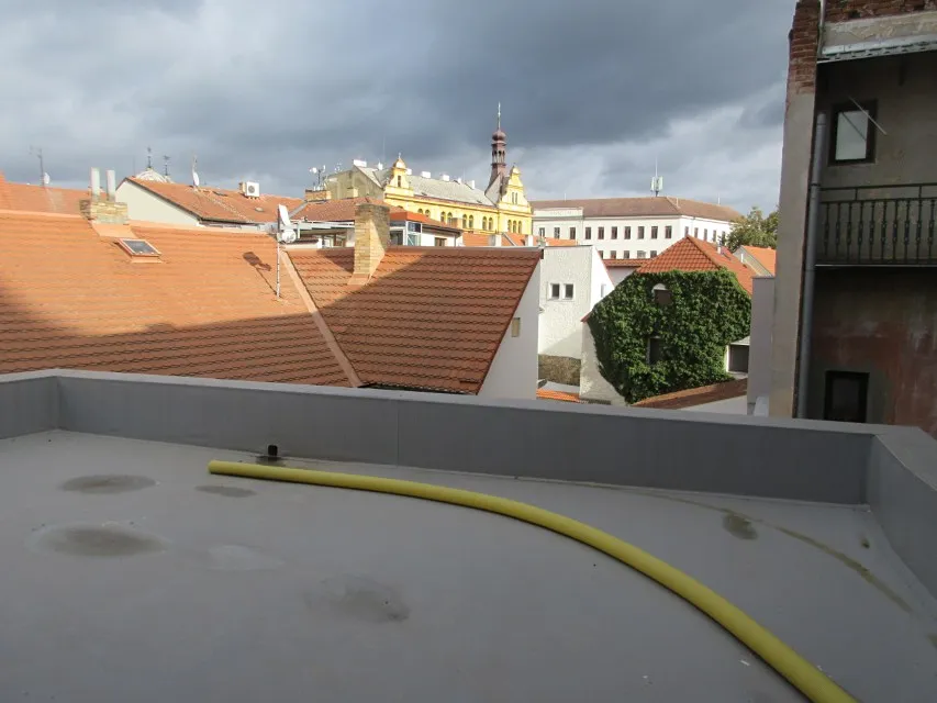 zázemí (12 m2), 1x místnost (20 m2) a koupelna (3 m2) se závěsným WC – vytápění