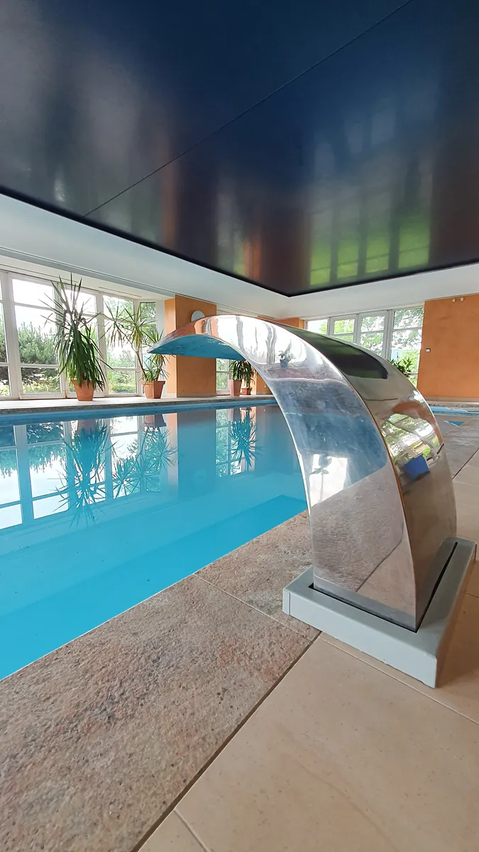sauna, odpočinková místnost, WC pro saunu a bazén, úklidová místnost, sklad sportovních potřeb, WC, zimní zahradka.