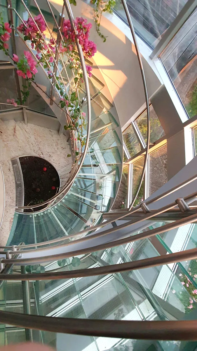 Skleněné schodiště, hala, vyhlidlová část věže, ložnice, venkovní terasa s výhledem na tenisový kurt a zahradu, šatna, koupelna (rohová vana), předsíňka, kulečníková místnost s menším krbem, 3 ložnice, balkon, WC bidet, pokoj pro hosty, předsíň, malý pokoj pro hosty, WC sprcha, pracovna, balkon.