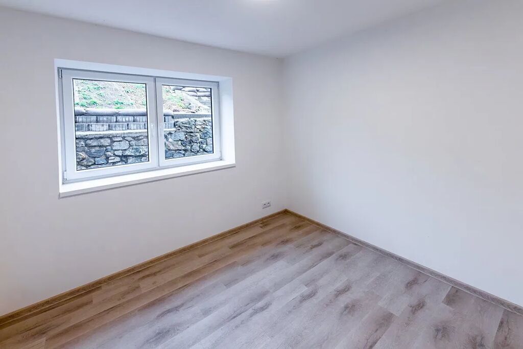 O teplo a pohodlí se postará podlahové vytápění s pokojovým termostatem, kvalitní vinylové podlahy, velkoformátové obklady v koupelně, dřevěné obložky a stylové dveře, okna s trojsklem a LED osvětlení.
