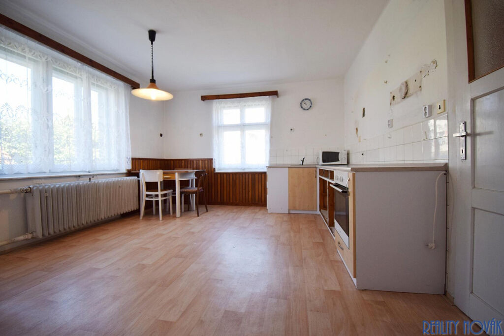 Nabízíme k prodeji velmi zajímavý rodinný dům, postavený na velkém pozemku v obci Plasy, část obce Babina. Nemovitosti byla postavená v roce 1962 na pozemcích o celkové výměře 1.527 m². Dům má aktuální dispozici 5+1, lze jej však po úpravách využívat i jako dvougenerační bydlení. Celková užitná plocha nemovitosti činí 243 m², z toho obytná plocha domu je 136 m², terasa má 9 m², ve sklepě je k dispozici dalších 28 m² a samostatná garáž s kůlnami, dřevníkem a dalšími prostory nabízí ještě zhruba 70 m². Dům je napojený na elektřinu, obecní vodovod a kanalizaci, vytápění je aktuálně zajištěno kotlem na tuhá paliva. Na zahradě s ideální orientací (mírný jižní svah) se nachází několik ovocných stromů a keřů a také skleník, Nemovitost je v původním ale velmi dobře udržovaném stavu, vyklizená a připravená na rekonstrukci dle dnešních standardů. Pro bližší informace a prohlídky kontaktujte makléře.