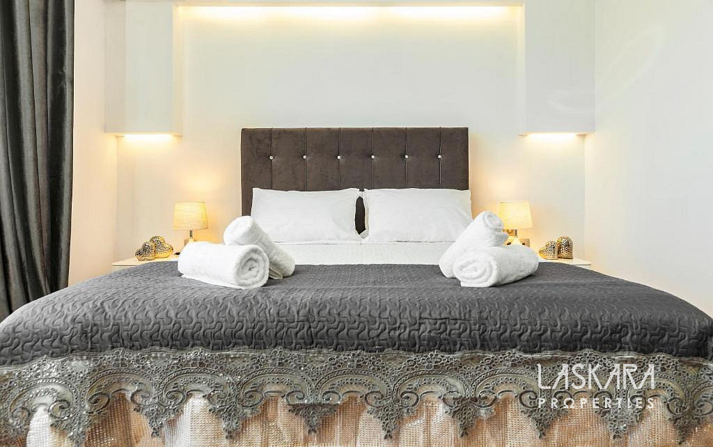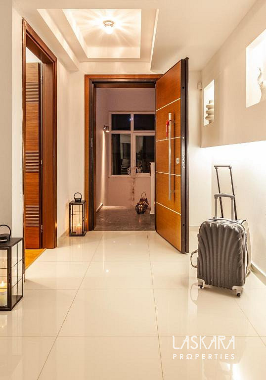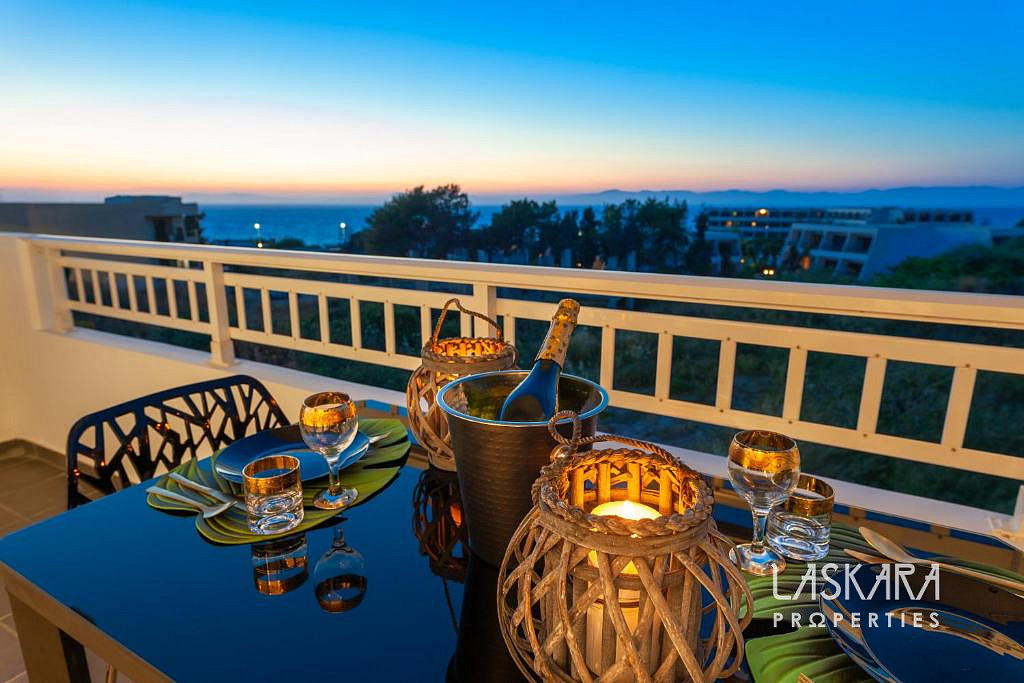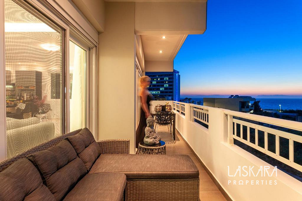 Apartmán nabízí podlahové vytápění, klimatizaci, hliníková okna s dvojitým zasklením a bezpečnostní dveře. Jeho stav je výborný, připravený k okamžitému užívání, a díky poloze v blízkosti pláže, obchodů, kaváren, hotelů i historického centra Rhodosu je vhodný jak pro osobní bydlení, tak jako luxusní investice s vysokým výnosem.