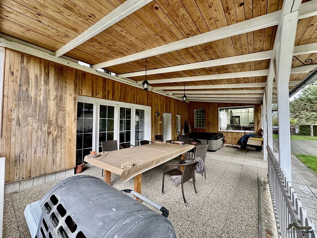 Jedná se o velký rodinný dům, stavěný v roce 1918, který procházel napříč lety úpravami a modernizací, a to postupně až do roku 2020. Celkově se jedná o bydlení, kde jednu část tvoří dům o velikosti 4+1 se dvěma koupelnami a dále nedodělaný byt o velikosti 3+1 s koupelnou a WC. To ovšem není vše, neboť díky rozsahu nemovitosti je zde ještě velká zimní zahrada s bazénem a přilehlou saunou, další větší kuchyně, ke které náleží dvě velké společenské místnosti, vybavené kulečníkem, pingpongovým stolem a k nim je i připojena menší skladovací místnost a velká terasa, na které je umístěna zánovní vířivá vana. Opět to ale není vše, jelikož se dále dostaneme do samostatné garáže, která je připojena na dům a další garáže, kde se díky schodům dostanete do patra, nachází se tu i půdní prostor kde je možno vybudovat další bydlení.