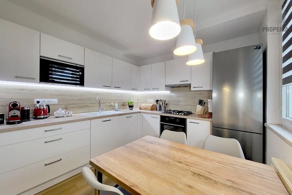 Koupelna nabízí komfortní sprchový kout a dostatek prostoru, kam se pohodlně vejde pračka i sušička, zatímco toaleta je řešena samostatně. Dispozice je promyšlená pro rodinný život a jako nadstandard zde najdete prostornou, praktickou šatnu, která efektivně řeší veškeré úložné potřeby. Samotný bytový dům je po kompletní revitalizaci (zateplení, fasáda, plastová okna, stoupačky), což garantuje nízké provozní náklady i estetickou hodnotu.