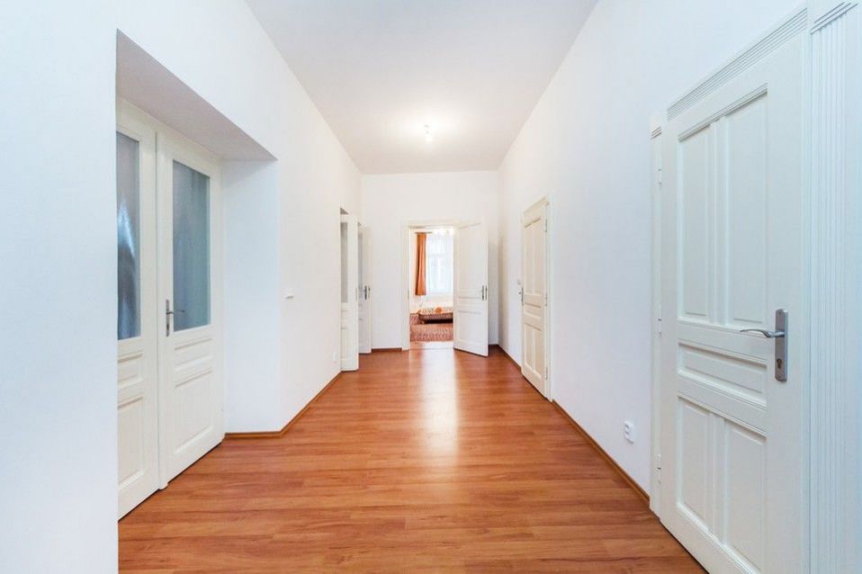 Exkluzivně nabízíme prodej prostorného, světlého bytu 4+1 (150 m2) po rekonstrukci v Praze 5. Byt s nádherným výhledem na Vyšehrad a orientací na jih a východ je situován ve 3.podlaží krásného secesního domu s novou fasádou, střechou a výtahem. Disponuje prostornou halou (23m2), kuchyní (17 m2), obývacím pokojem (27 m2), ložnicí s vestavěnými skříněmi (21 m2), dvěma dalšími pokoji (21 a 22 m2), koupelnou s vanou, sprchovým koutem, dvěma umyvadly a WC (9 m2), technickou místností a samostatným WC s umyvadlem. Všechny pokoje jsou průchozí.