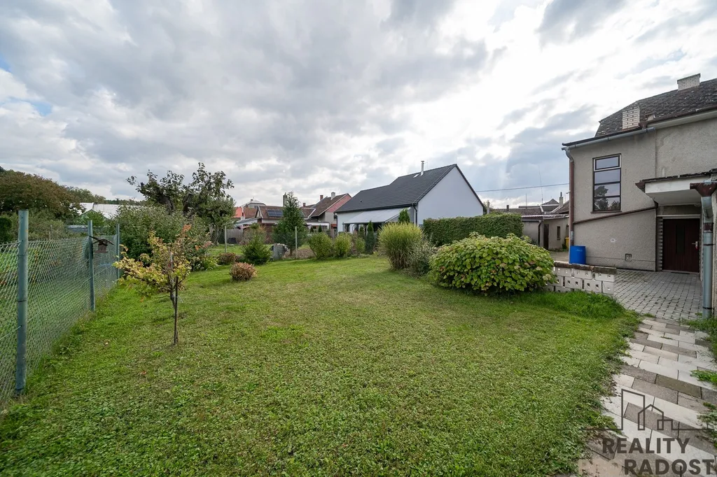 Dvougenerační rodinný dům leží na pozemku o celkové výměře 845 m2. Na pozemku se nachází také pergola s posezením a prostorná garáž, na dům navazuje technická část domu využívaná jako sklad nářadí.