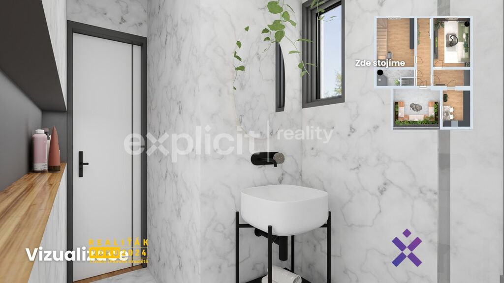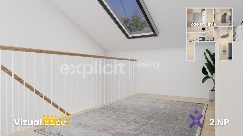 Vizualizace a vyobrazení nemovitosti a pozemku jsou pouze ilustrativní. Závazné údaje o hranicích pozemku jsou uvedeny v katastrální mapě.
