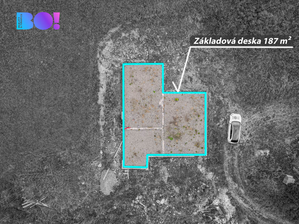 Rozpracovaný základ pro rodinný dům o velikosti cca 187 m² – připravený a ihned k využití.