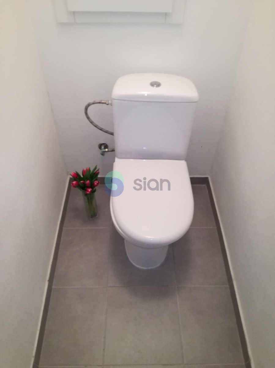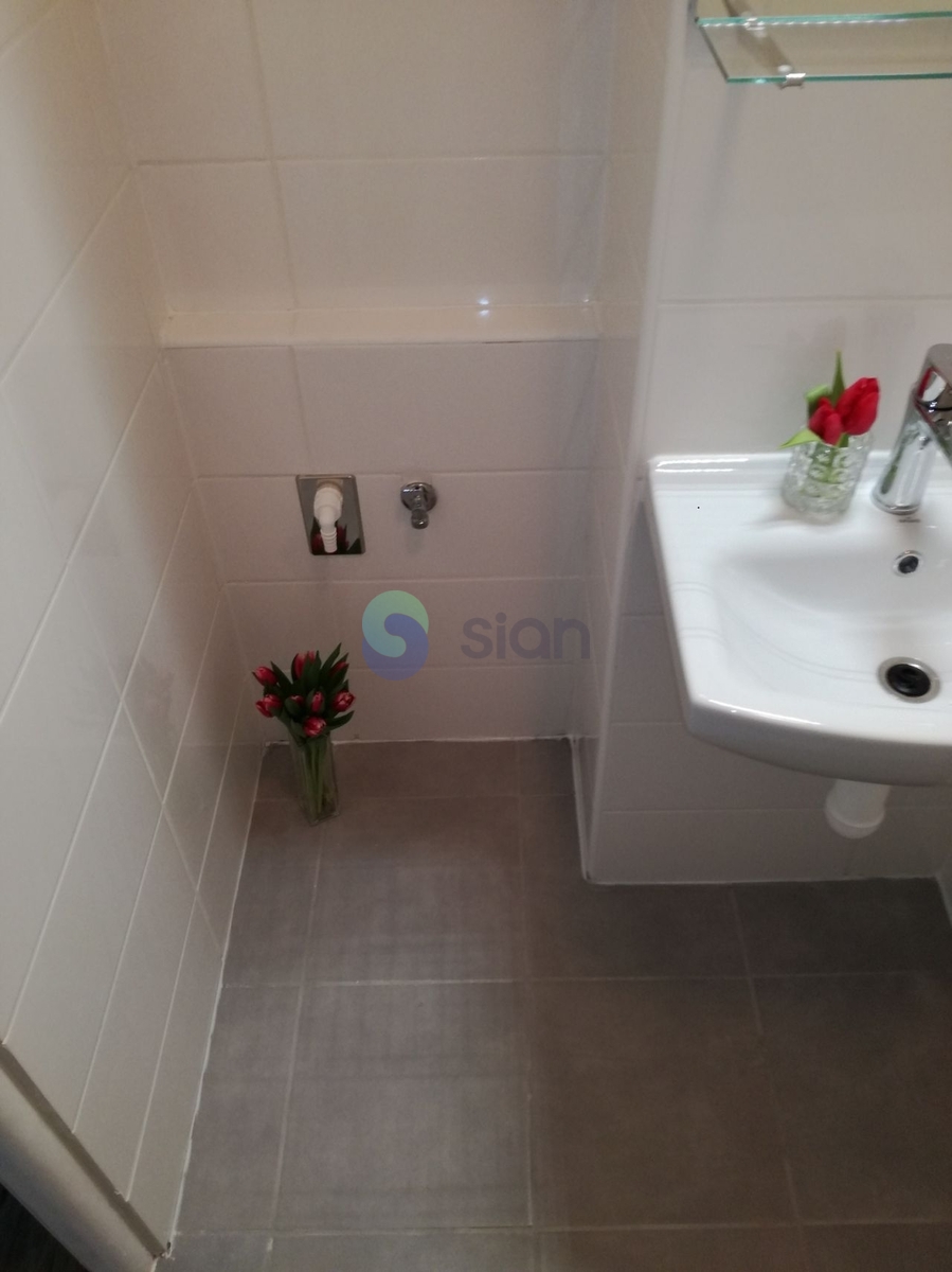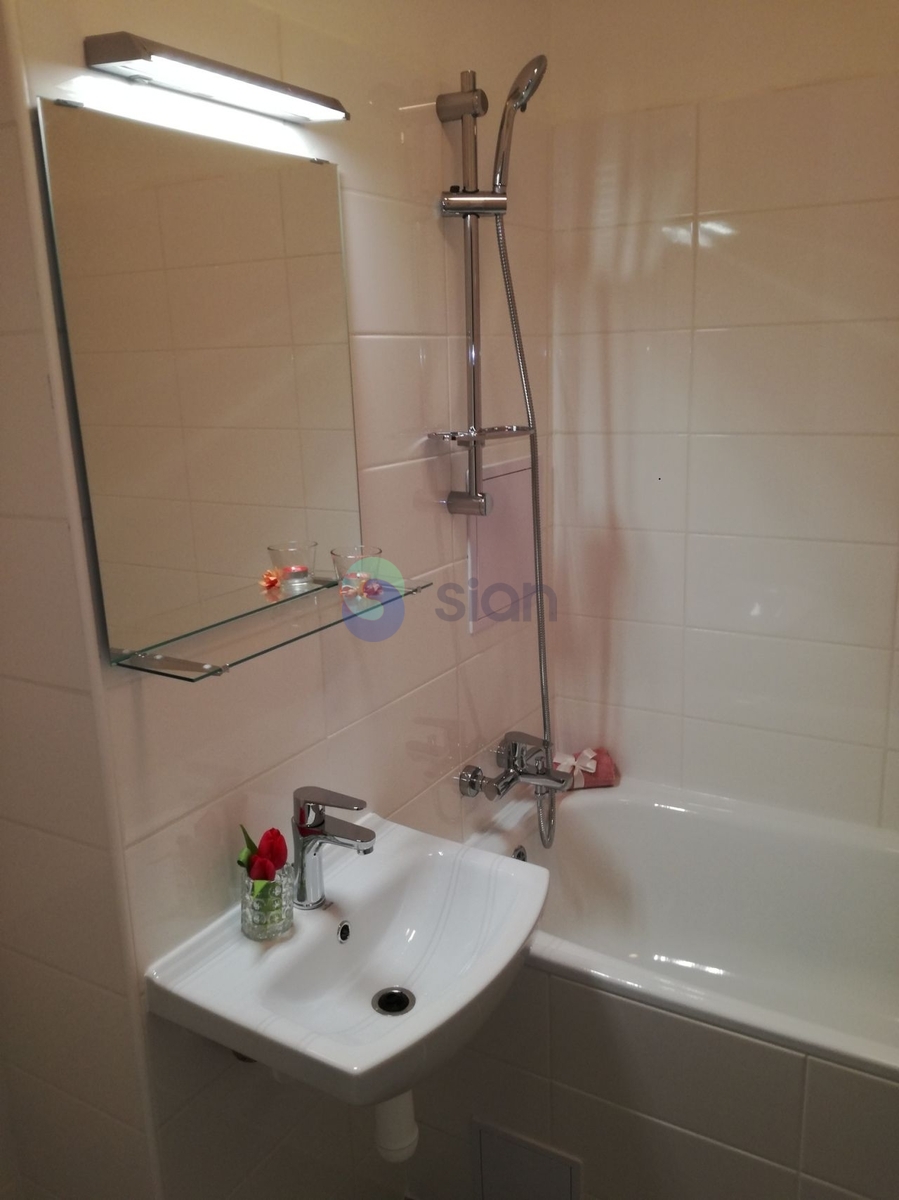 Koupelna je vybavena vanou, umyvadlem a přípravou na pračku (doporučena malá pračka do 50 cm s horním plněním). Toaleta je samostatná.