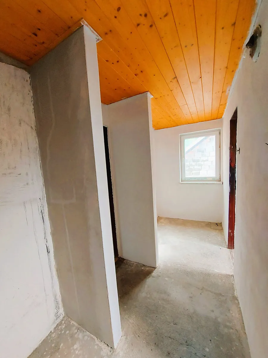 Nabízíme na prodej RD z roku 1989, jedná se o zděný, nepodsklepený dům se dvěma nadzemními podlažími a využitým podkrovím, situovaný v klidné okrajové části obce. Objekt následně prošel dalšími rekonstrukcemi a modernizacemi. V roce 2010 byla po požáru objektu provedena oprava střešní konstrukce, položena nová střešní krytina, fasáda, plastová okna a částečná modernizace vnitřního vybavení. CP pozemků činí 2144 m2. Dům je napojen na elektřinu, kanalizaci a obecní vodovod, interiér domu je vhodný k celkové modernizaci. Za domem se nachází 2 vedlejší stavby, využívané ke skladování a k chovu domácích zvířat. Vytápění domu je zajištěno kotlem na tuhá paliva umístěným v přízemí domu a ohřev teplé vody elektrickým bojlerem. Průkaz energetické náročnosti budovy zatím nebyl dodán, proto je uvedena třída G.