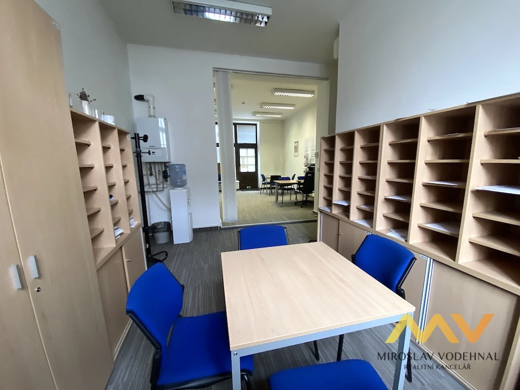 V přízemí se nachází nebytový prostor o výměře 47 m² s vlastní výlohou a vstupem přímo z ulice, který je ideální pro obchod, kontaktní místo nebo kancelář. Prostor je rozdělen na přední část vhodnou jako prodejní plocha či klientská zóna a zadní část využitelnou jako sklad nebo zázemí, k dispozici je sociální zařízení přístupné z chodby domu. Díky poloze na frekventované ulici nabízí výbornou viditelnost a dostupnost pro zákazníky.