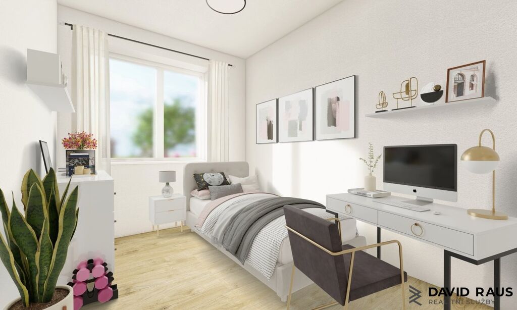 První naše kroky vedou do vstupní předsíně, která nabízí dostatek místa k umístění nejen botníku, nástěnného věšáku na odkládání svršků, ale i velké šatní skříně. Chodbou dále vstupujeme do prvního obytného pokoje, který lze využít jako pracovnu, či dětský pokoj. Z pokoje zpět na chodbu, pokračujeme dále, míjíme po pravé straně samostatné dveře do koupelny se sprchovým koutem a dveře vedoucí na samostatné WC. Skvělý výběr světlých tónů obkladů a dlažby, dává prostor pro kreativitu. Kdo má rád více barev, oživí tak prostor barevnými doplňky. Ještě než vstoupíme do obývacího pokoje s kuchyňským koutem, vcházíme do druhého obytného pokoje - ložnice. Oba samostatné pokoje jsou slunné a prostorné, následné uspořádání nábytku pro Vás bude snadné. Vinylové podlahy v příjemných, teplých tónech, v dekoru dřeva s elegantní bílou výmalbou stěn jsou skvělým základem pro jakýkoliv styl bydlení. Snadno si tak zařídíte prostory podle svého vkusu.
