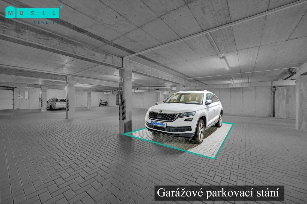 Možnost pronájmu krytého parkovacího stání přímo v domě za 1 500 Kč/měs.