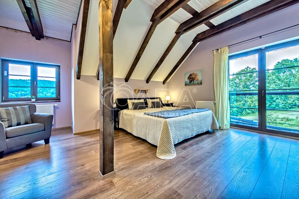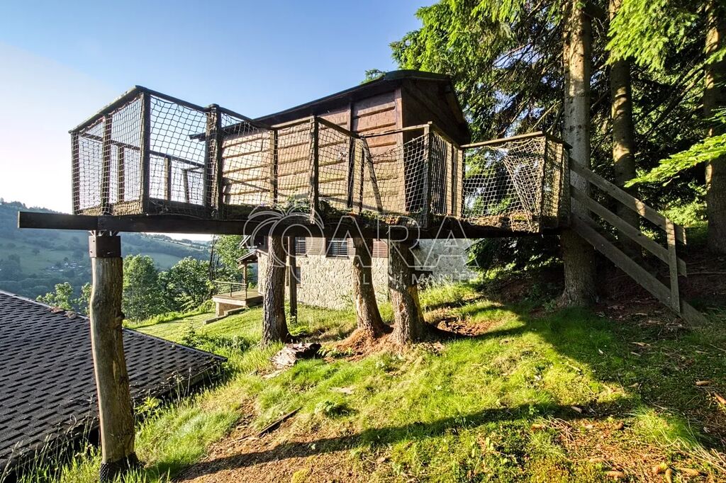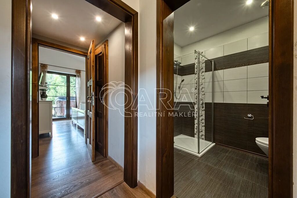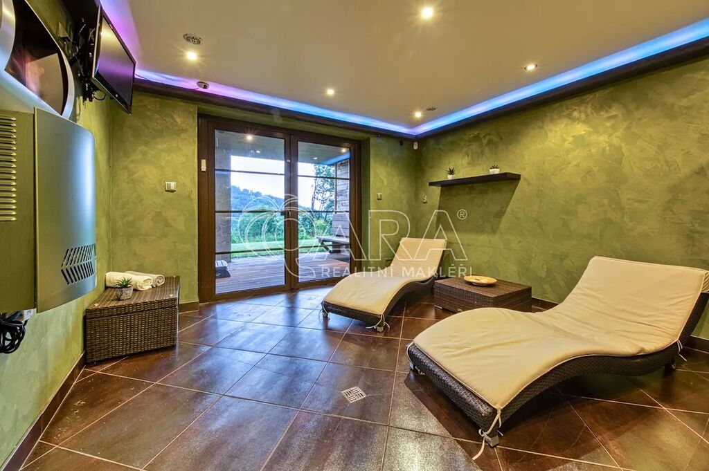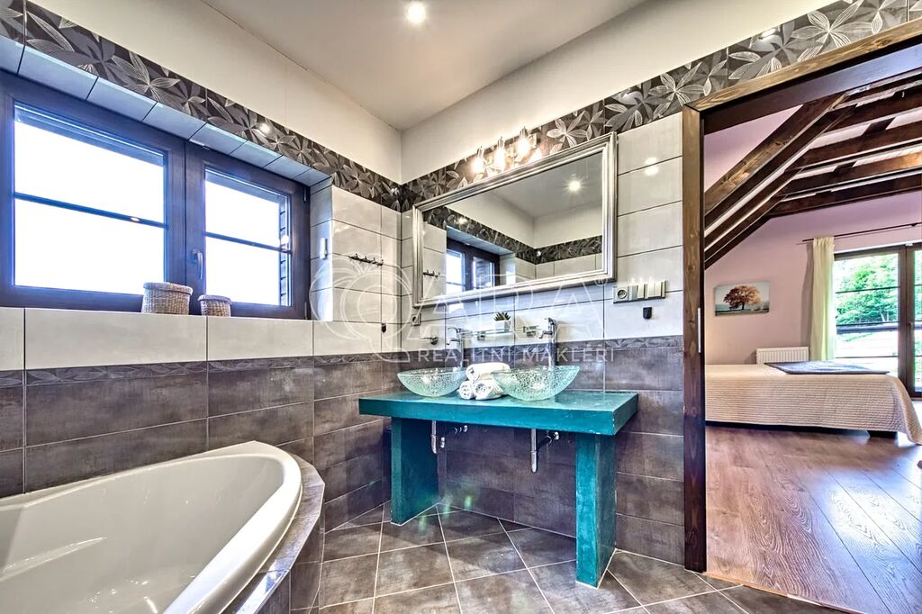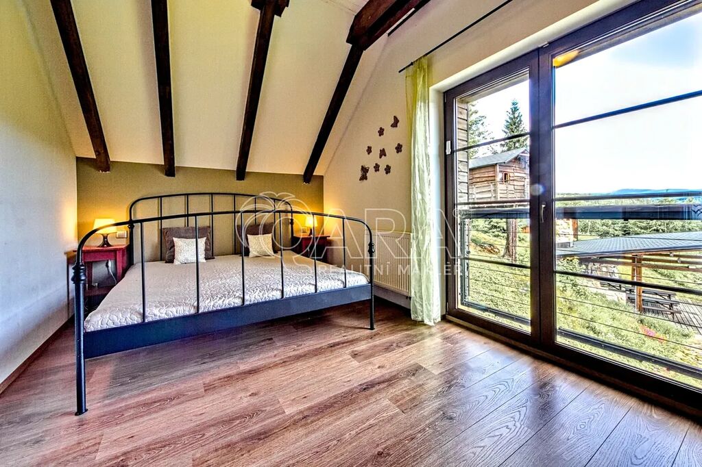 Nabízíme ke koupi exkluzivní horskou rezidenci ve vyhledávané lokalitě Vrchlabí, přímo mezi skiareály Bubákov a Herlíkovice. Dům o dispozici 7+kk je doplněn o samostatný apartmán 2+1 a nabízí celkovou užitnou plochu 568 m². Nachází se na prostorném pozemku o rozloze 4 087 m² a je nabízen kompletně vybavený, připravený k okamžitému užívání. Co na této nemovitosti oceníte nejvíce je naprosté soukromí, klid a nádherné výhledy.