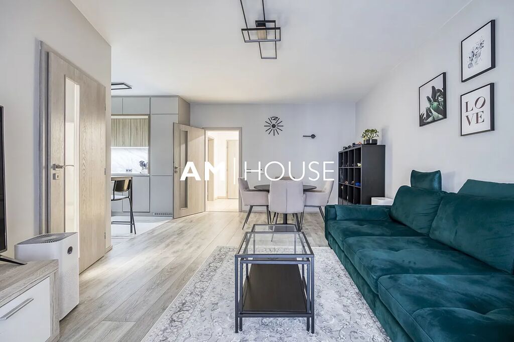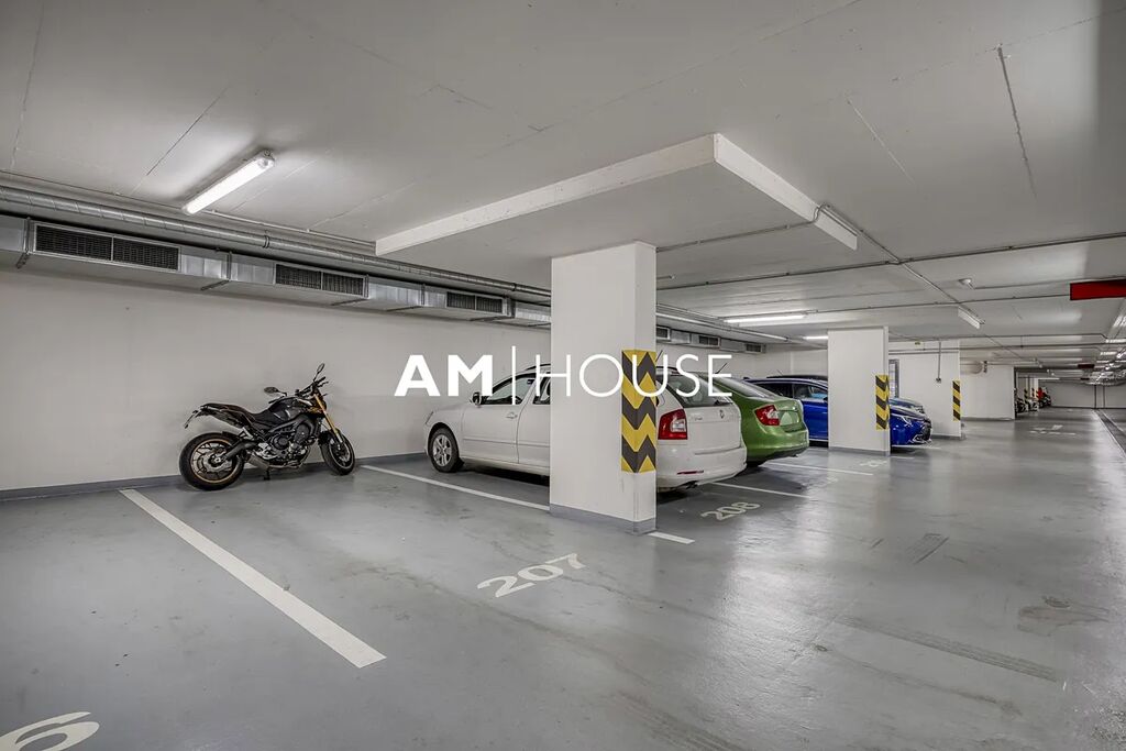 Byt se skládá z obývacího pokoje s kuchyňským koutem, dvou samostatných ložnic, koupelny, samostatné toalety a předsíně. K bytu náleží parkovací stání v podzemní garáži a sklepní kóje.