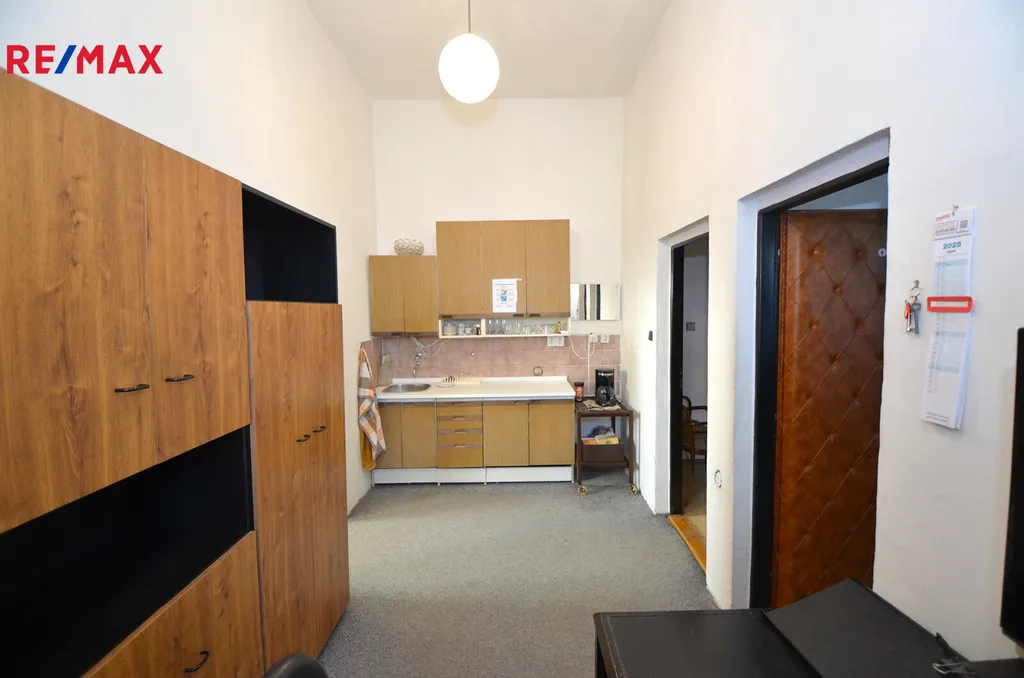 K pronájmu Vám nabízíme nebytový prostor, v současnosti využívaný jako "trojkancelář" o celkové výměře cca 57 m2. Prostor se skládá z předsíňky (cca 4,2m2) vedoucí do dvou místností (18m2 a 14,9 m2) z nichž prostřední je průchozí do třetí místnosti (19,7m2) , nyní využívané jako zasedací místnost. Nabízené prostory se nachází v 1. nadzemním podlaží dvoupodlažní budovy s výbornou dopravní dostupností na Holické ulici v Olomouci. Vytápění je zajištěno kotelnou společnou pro celou budovu, v současnosti je možné vodu (mimo společné zázemí) využívat v prostřední místnosti.